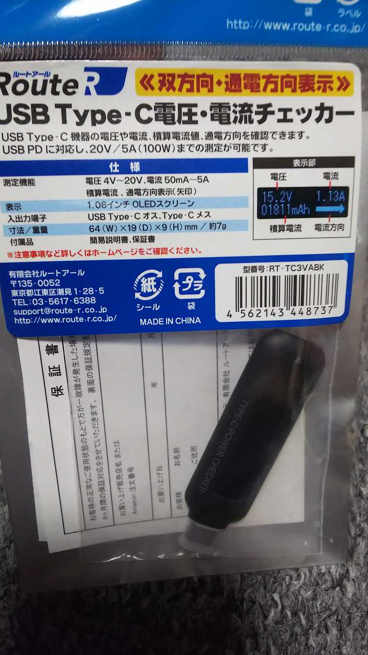 ルートアール 双方向・通電方向表示 USB Type-C電圧・電流チェッカー ブラック RT-TC3VABK販売: ルートアール