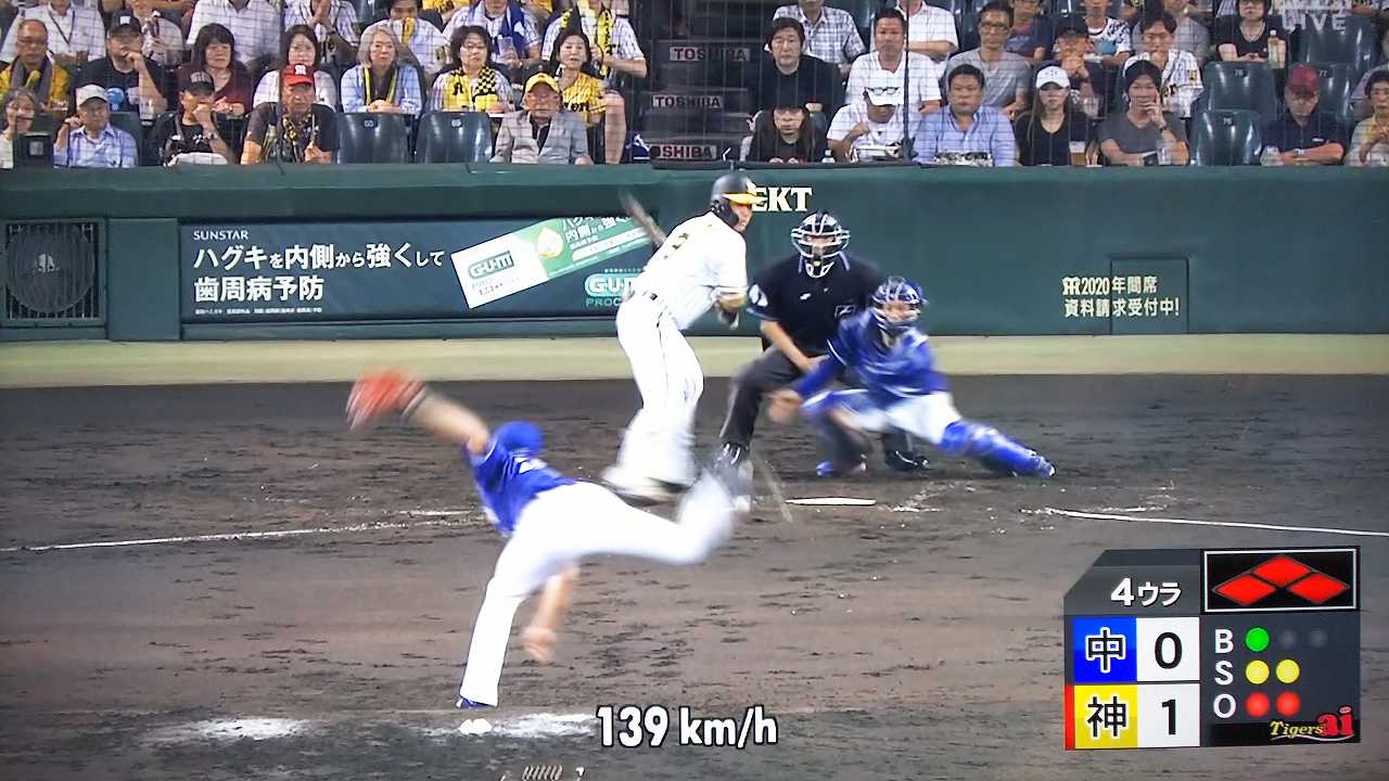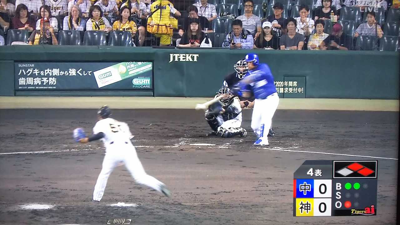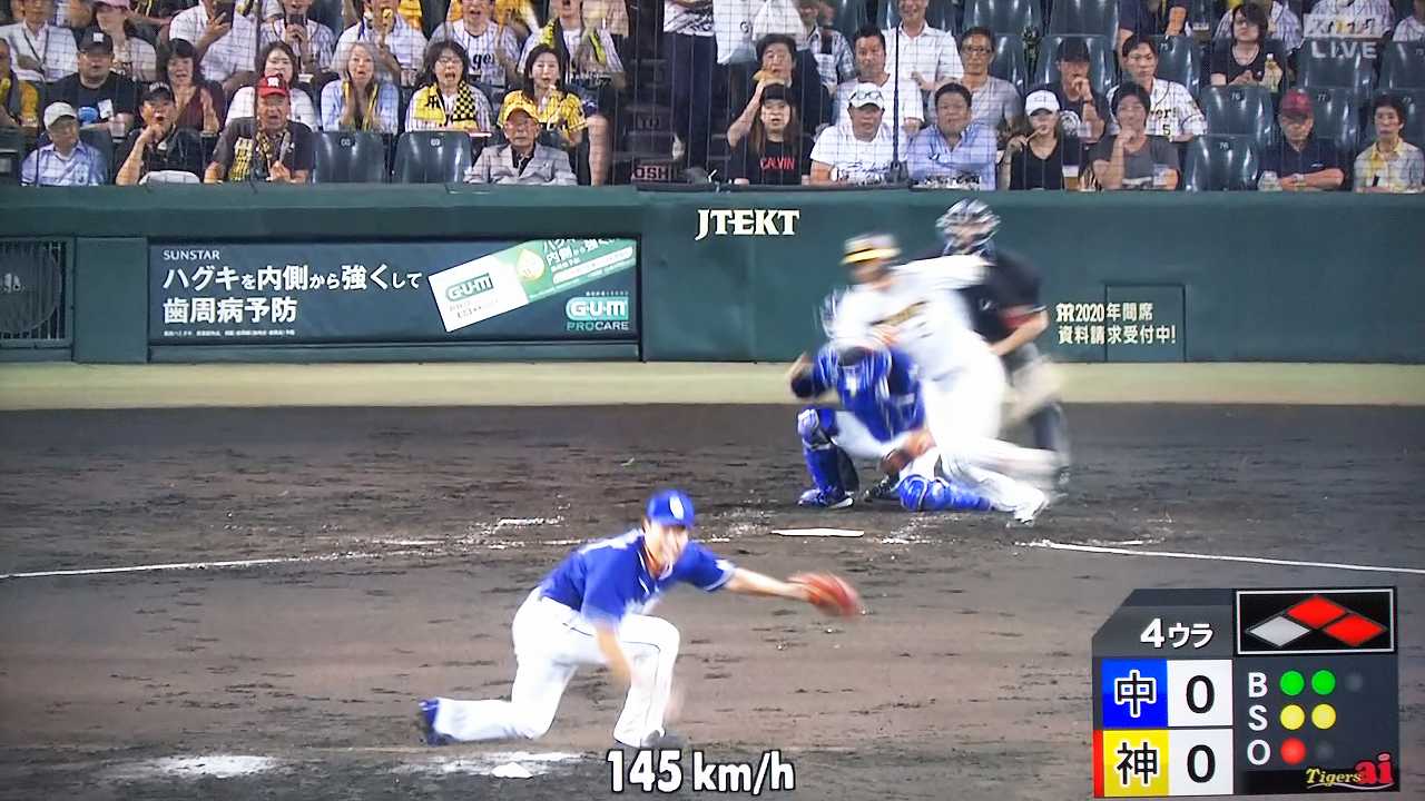 先発・青柳は走者を出しながらも得点を許さない。初回と2回は梅野が盗塁を狙った走者を刺し、4回と5回は併殺打を奪う。