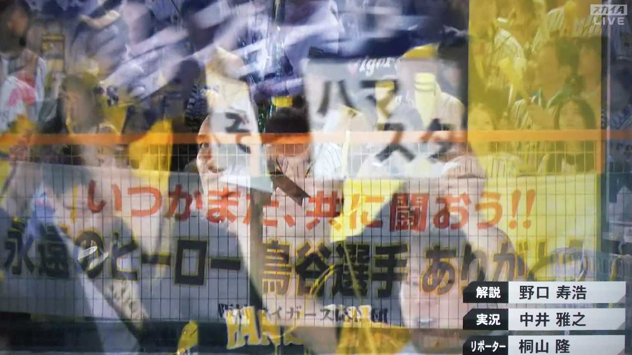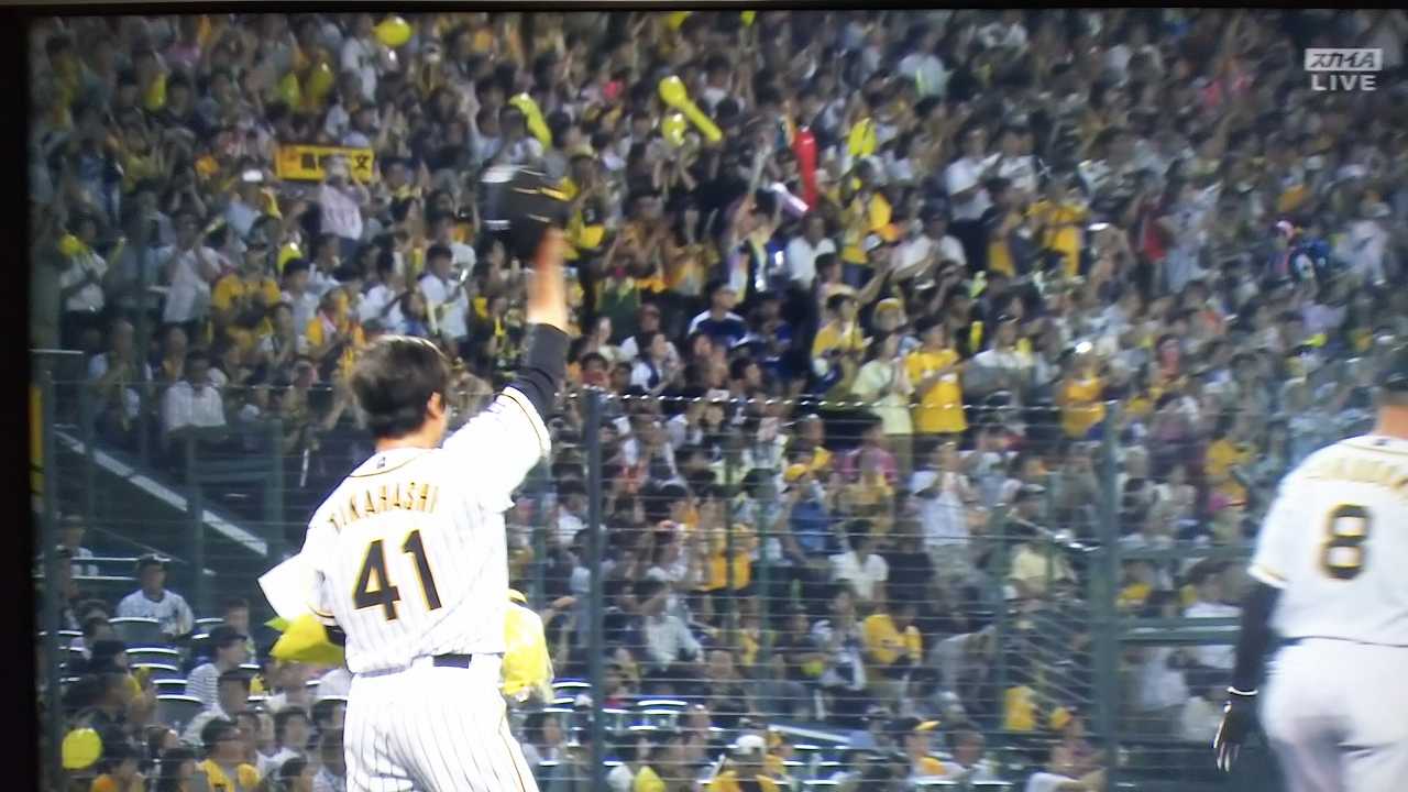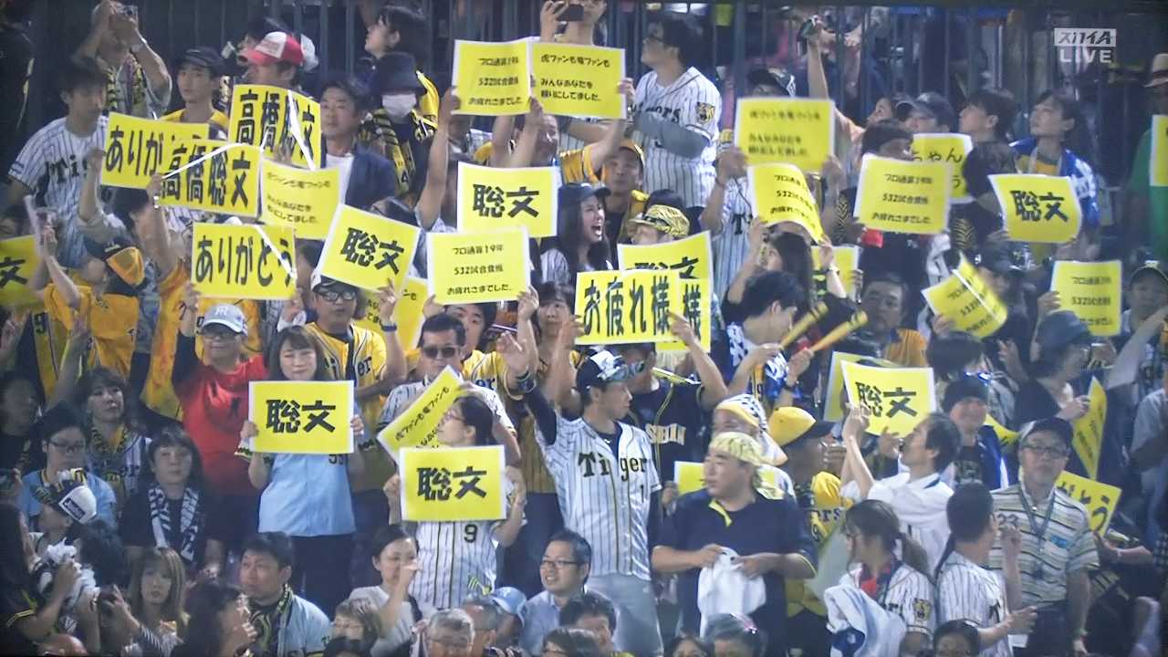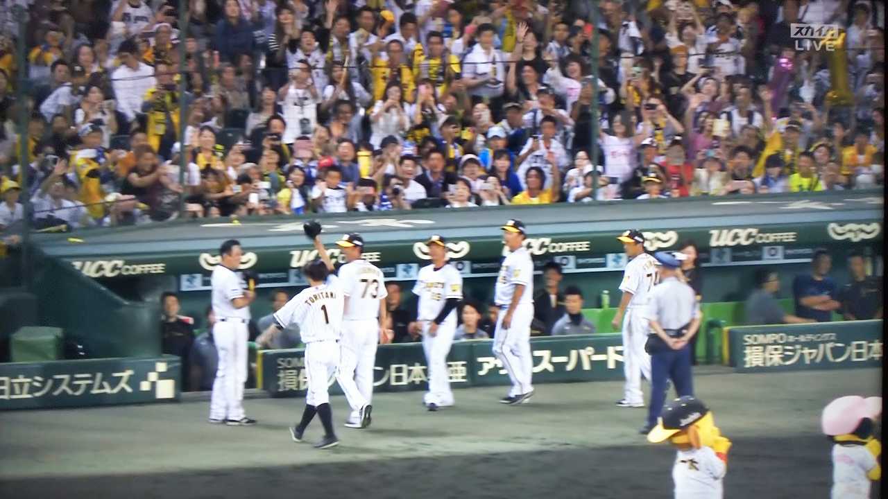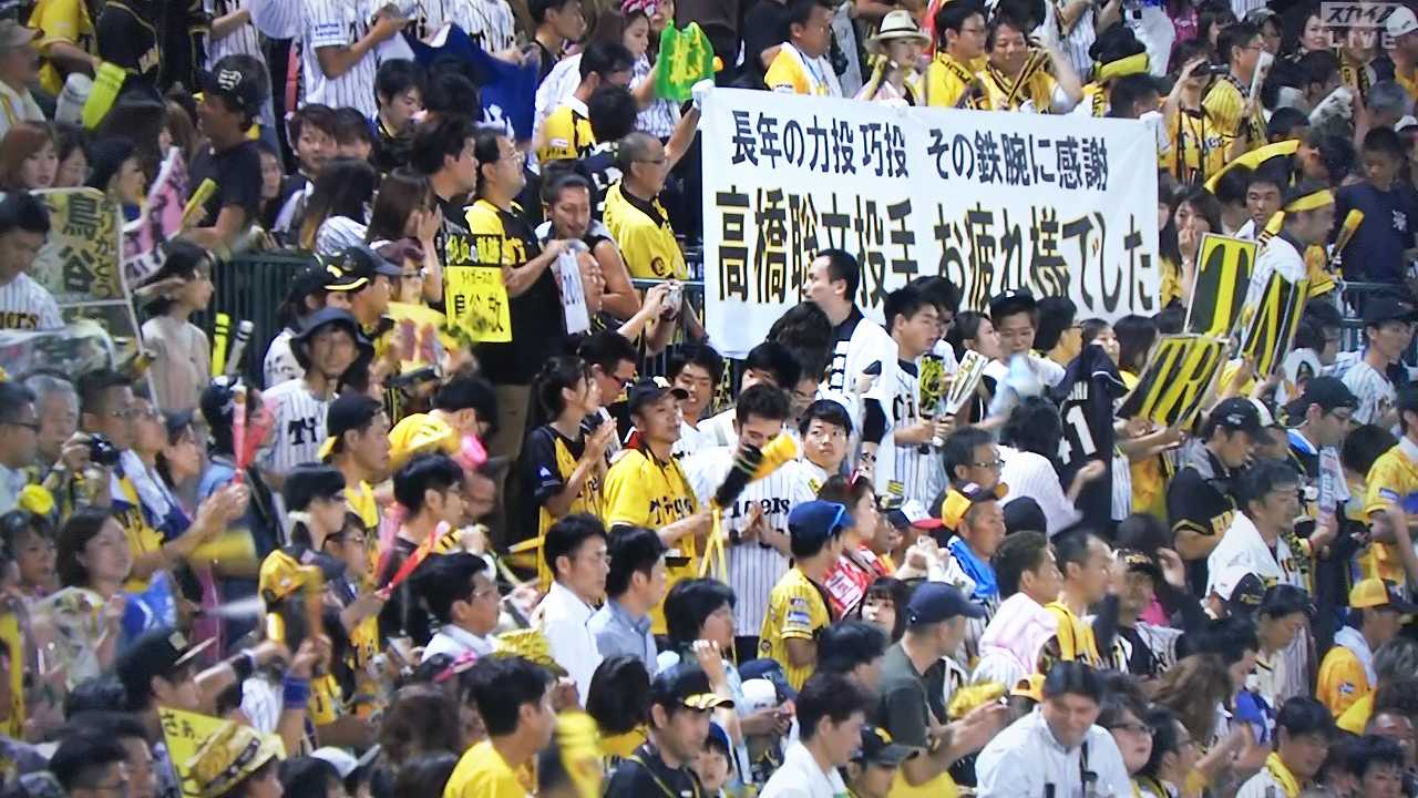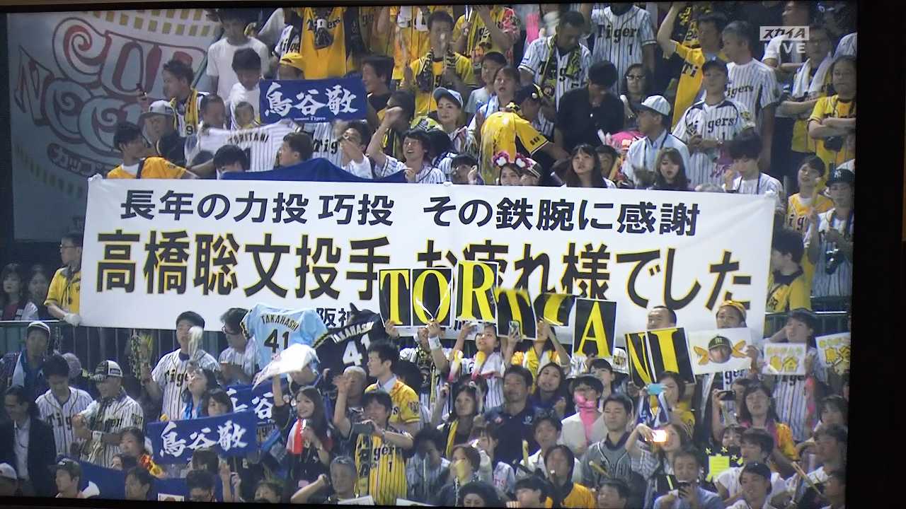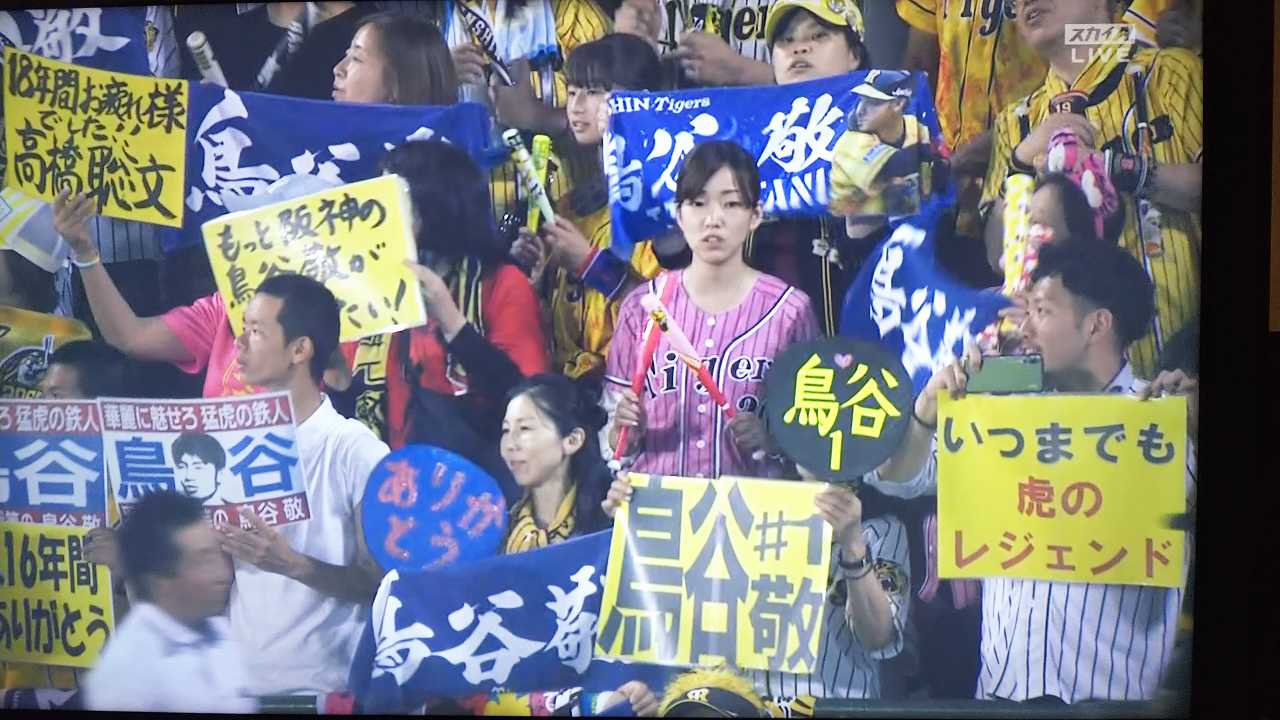 7回には今季限りでユニフォームを脱ぐ高橋聡がマウンドへ。中日の3番・福田をサードゴロに打ち取ると福留、相手先発の大野から花束を受け取り大きな拍手を浴びた。その裏の攻撃では先頭で鳥谷が打席へ。前のイニングにネクストバッターズサークルに出てくるだけで歓声が巻き起こるスーパースターは安打こそ出なかったもののショートの守備にも就きファンを沸かせた。