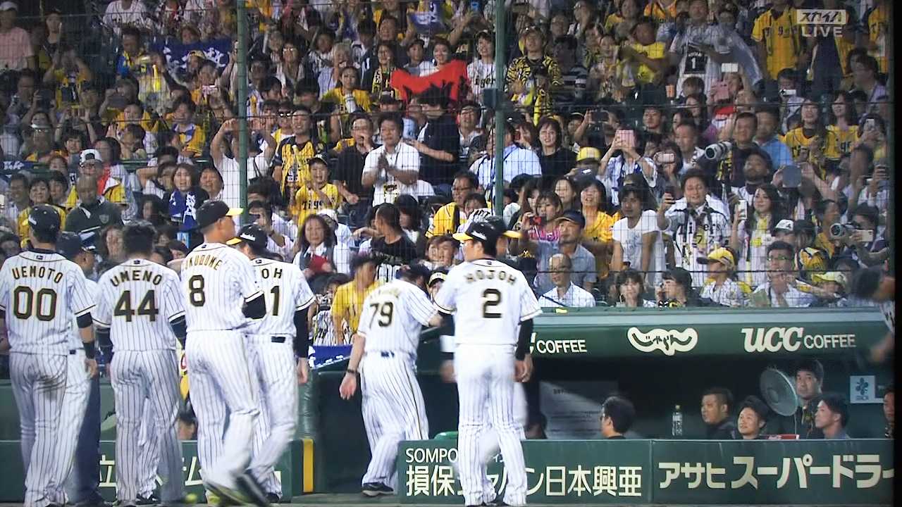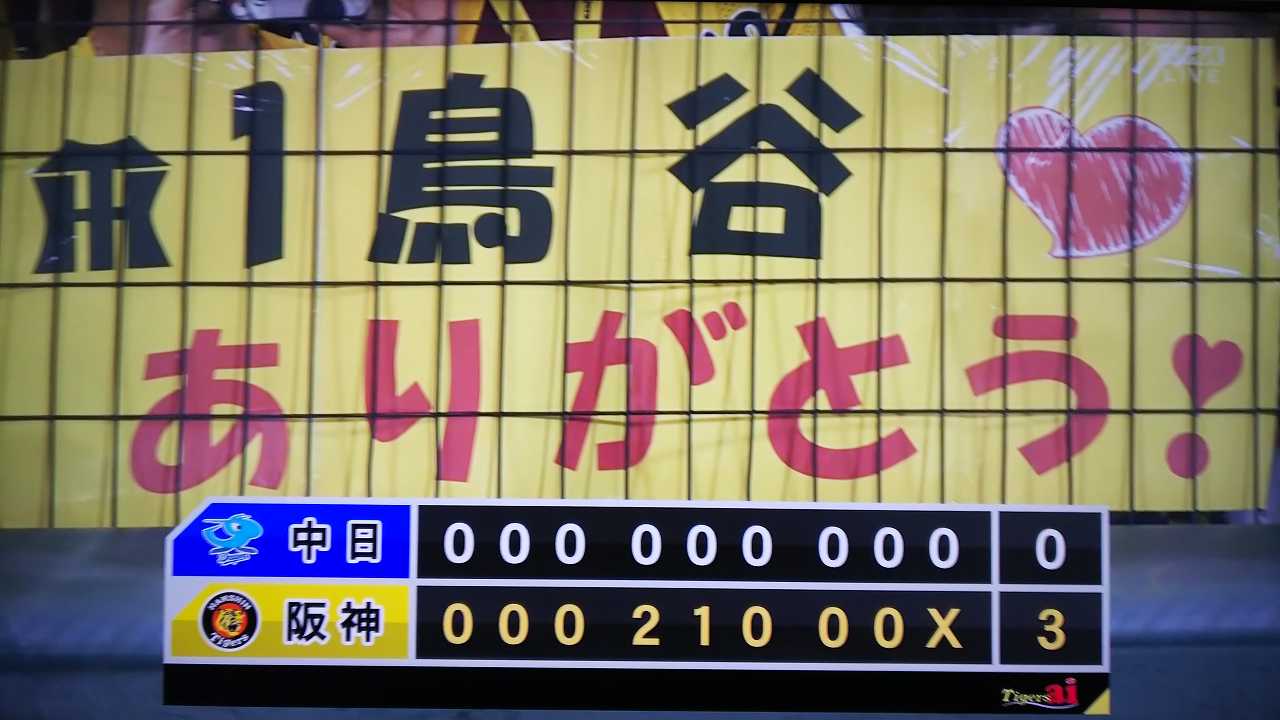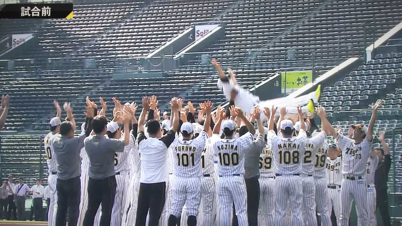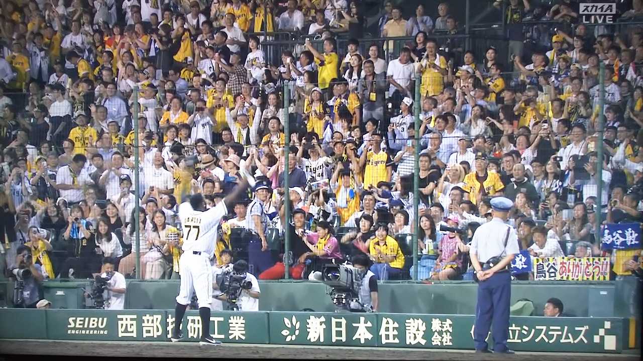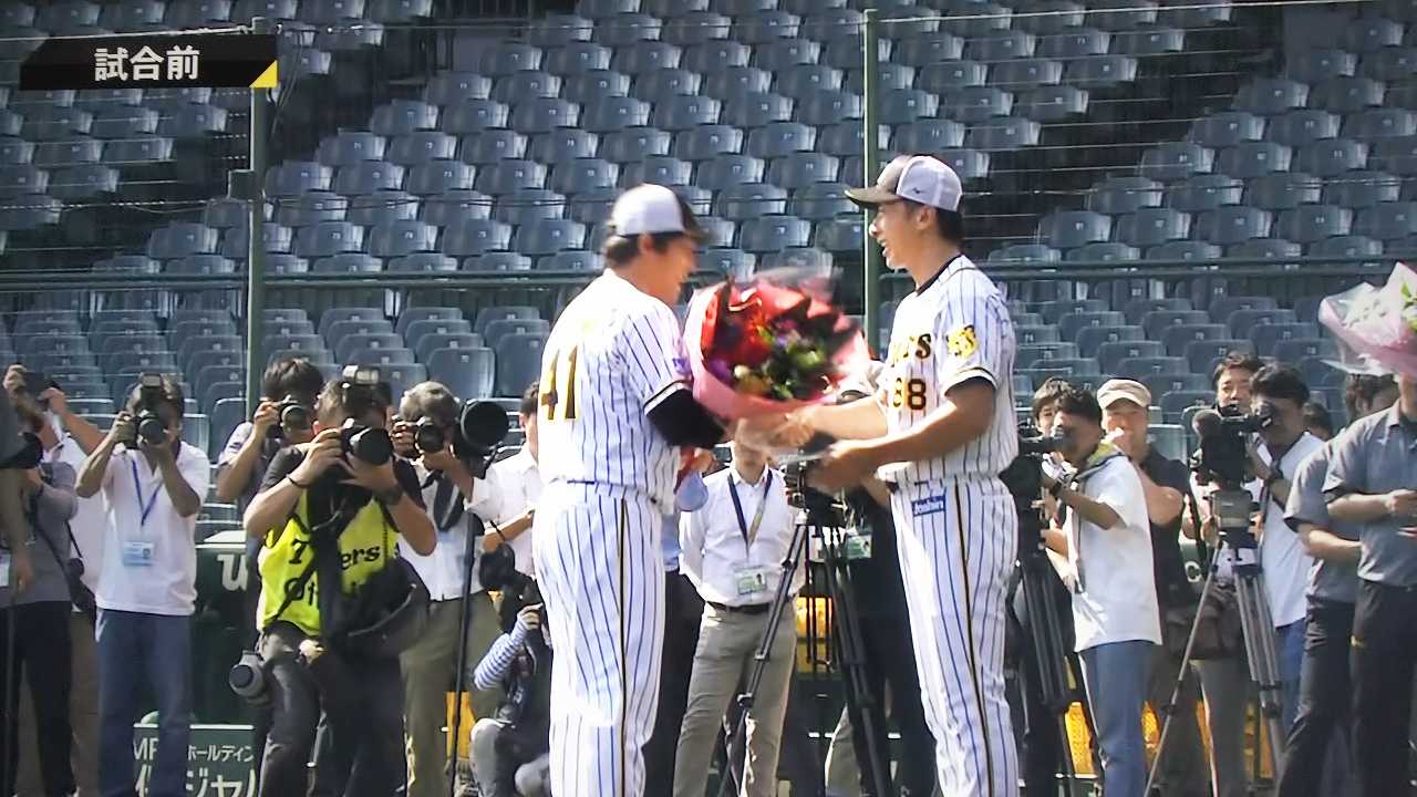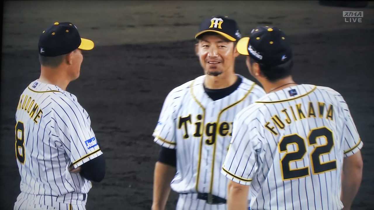 7回には今季限りでユニフォームを脱ぐ高橋聡がマウンドへ。中日の3番・福田をサードゴロに打ち取ると福留、相手先発の大野から花束を受け取り大きな拍手を浴びた。その裏の攻撃では先頭で鳥谷が打席へ。前のイニングにネクストバッターズサークルに出てくるだけで歓声が巻き起こるスーパースターは安打こそ出なかったもののショートの守備にも就きファンを沸かせた。
