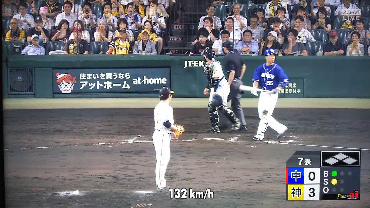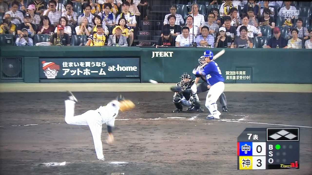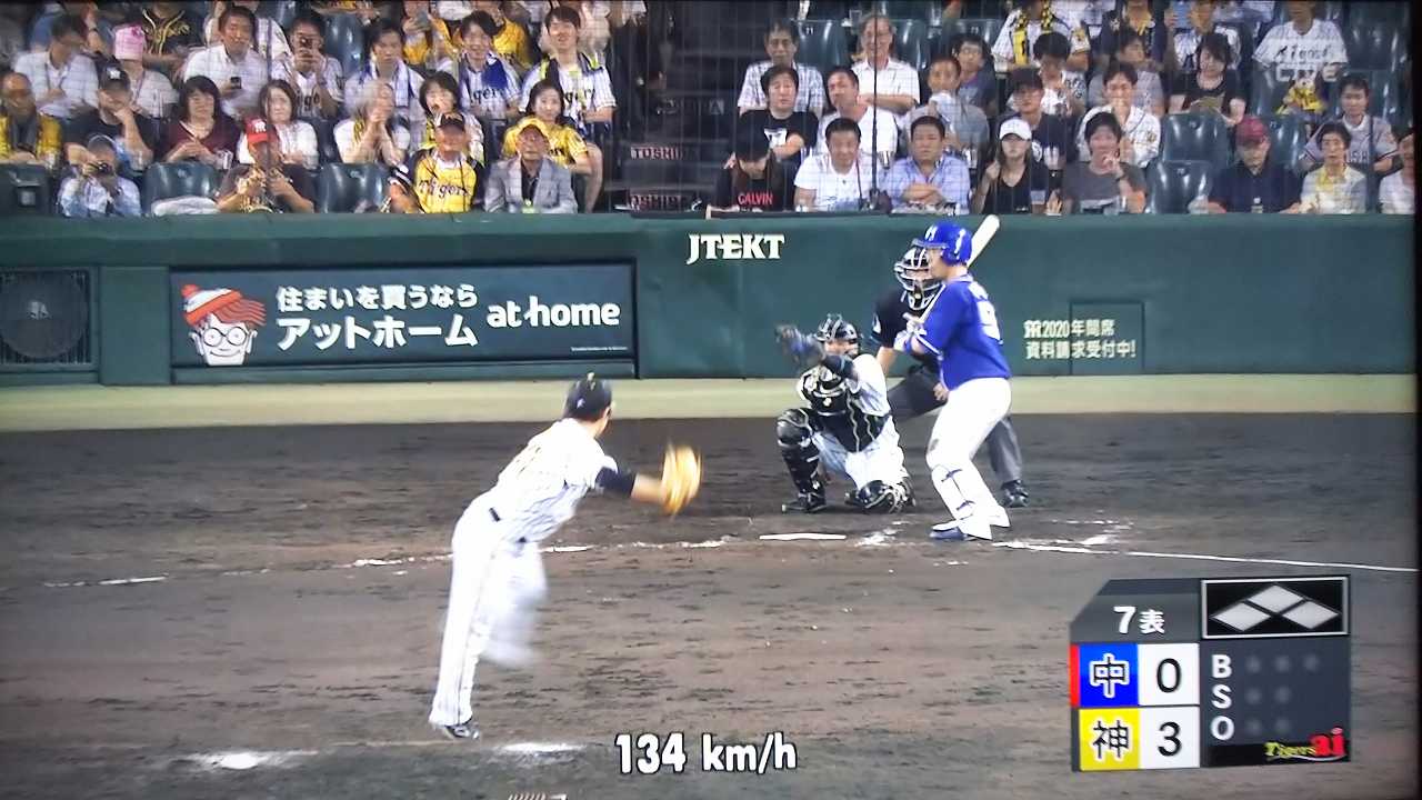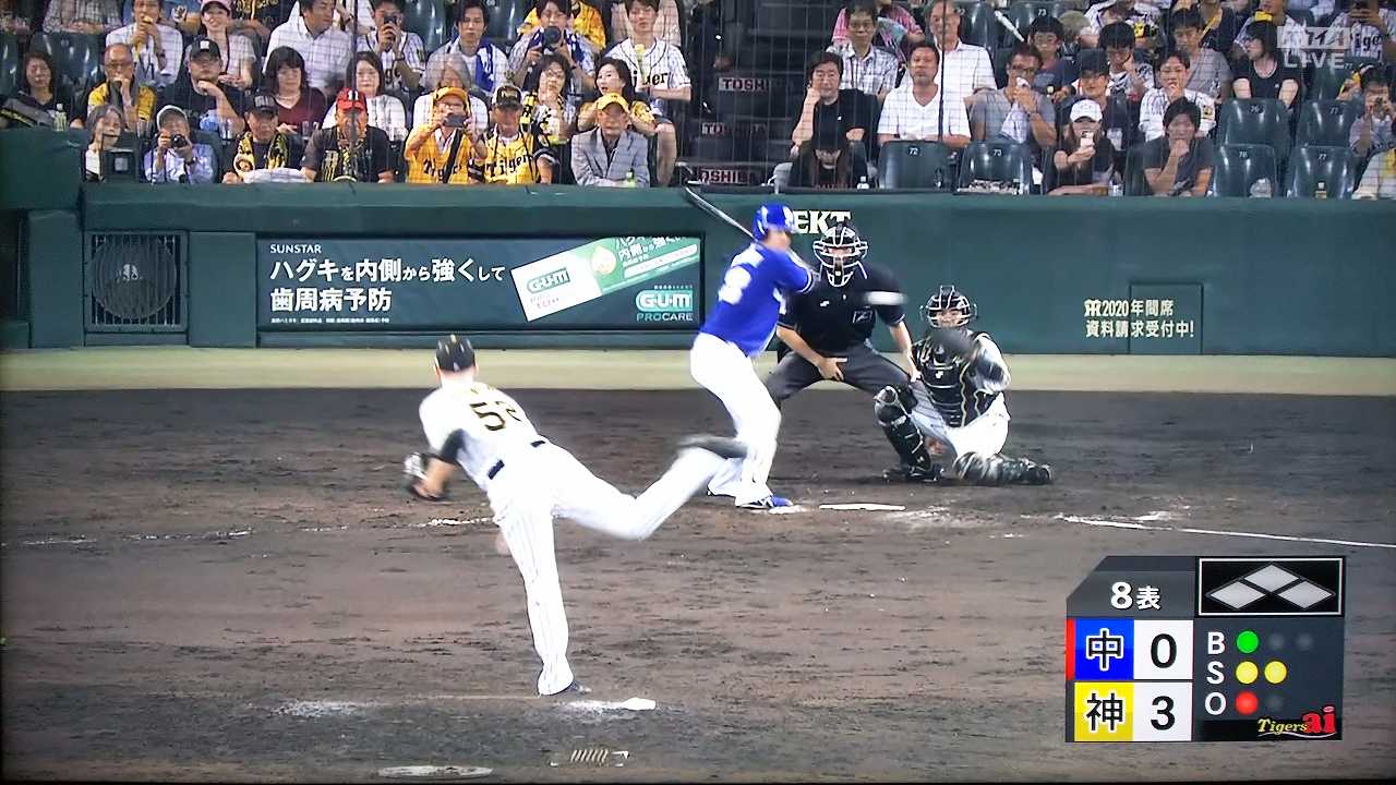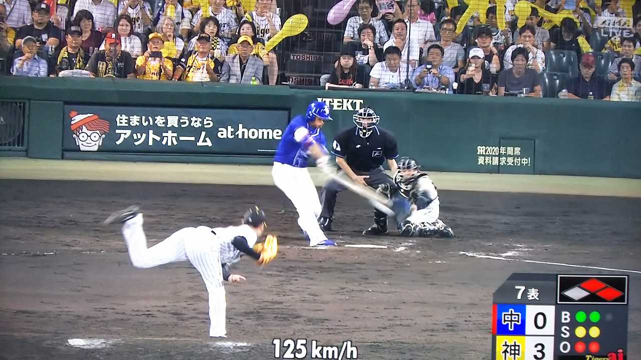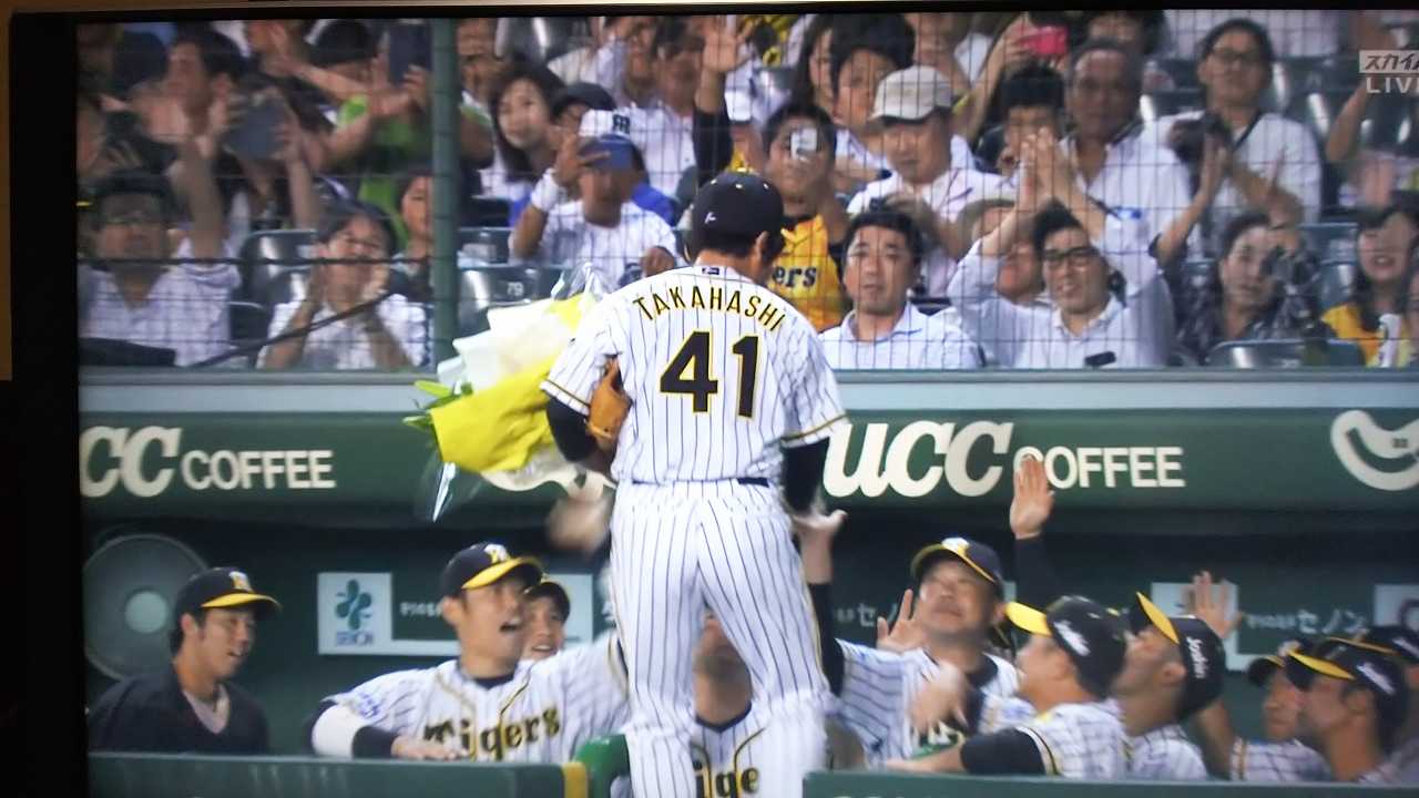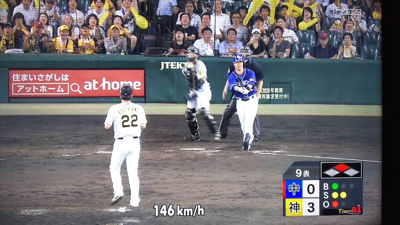 7回には今季限りでユニフォームを脱ぐ高橋聡がマウンドへ。中日の3番・福田をサードゴロに打ち取ると福留、相手先発の大野から花束を受け取り大きな拍手を浴びた。その裏の攻撃では先頭で鳥谷が打席へ。前のイニングにネクストバッターズサークルに出てくるだけで歓声が巻き起こるスーパースターは安打こそ出なかったもののショートの守備にも就きファンを沸かせた。