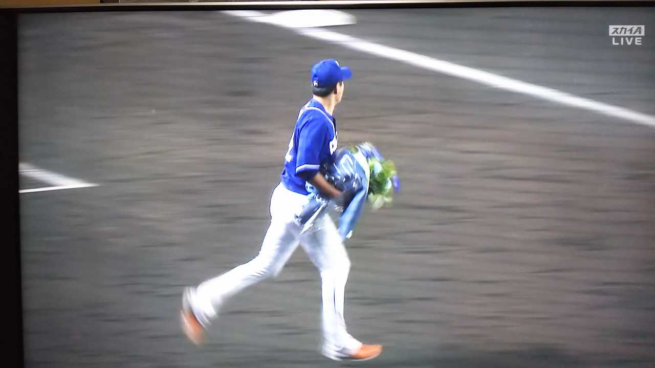 ビシエドをゲッツーで打ち取り、一人もランナーを出してない大野を防御率一位獲得で三回1/3で交代!