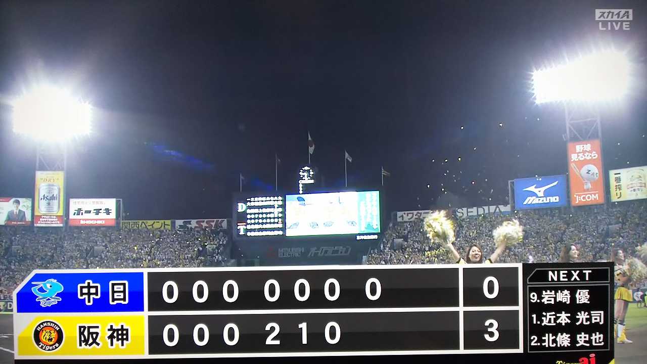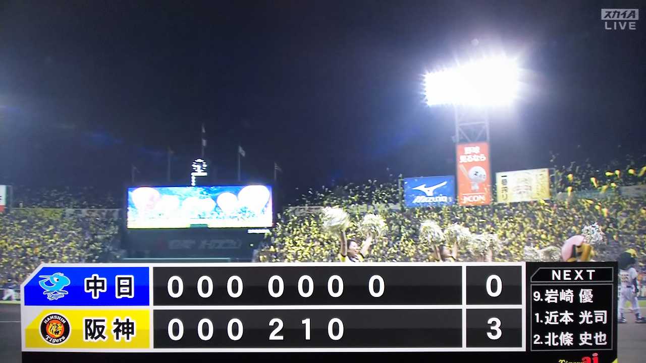 8回はジョンソン、9回は藤川が登板し無失点リレーが完成。今シーズンのラストゲームを白星で飾りCS進出進出を決めた。3位で臨むCSに失うものは何もない。DeNA、巨人を打ち倒し日本シリーズの舞台として甲子園に帰ってくる。