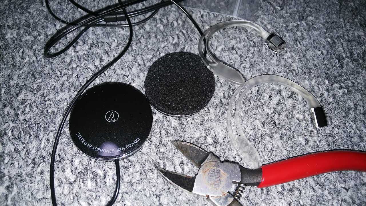 脱着式イヤーカップで、ヘッドフォンとか設置しやすいってことで、さっそくいつものように、ヘッドフォンを設置してやりましたよ。