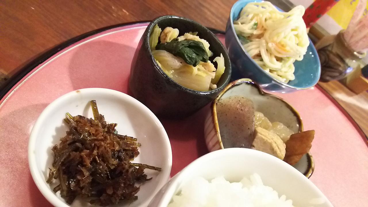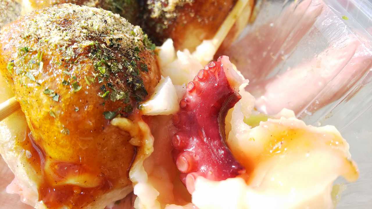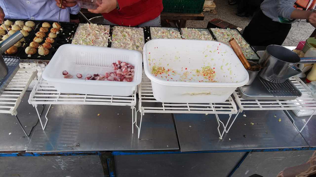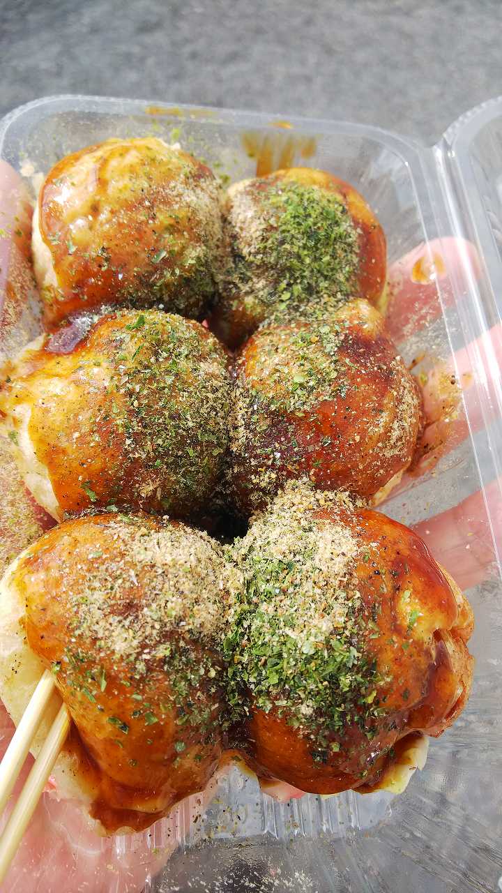 いつものように、キャベツ入りの京都風たこ焼き、片口イワシ食べて