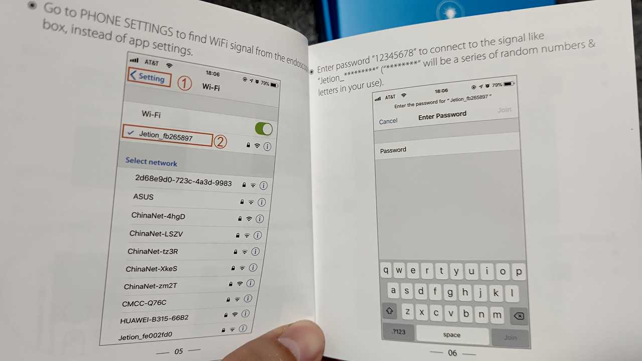 ③アプリの設定ではなく、スマホの設定に内視鏡のWiFiボックスからのWiFi信号を見つけます。