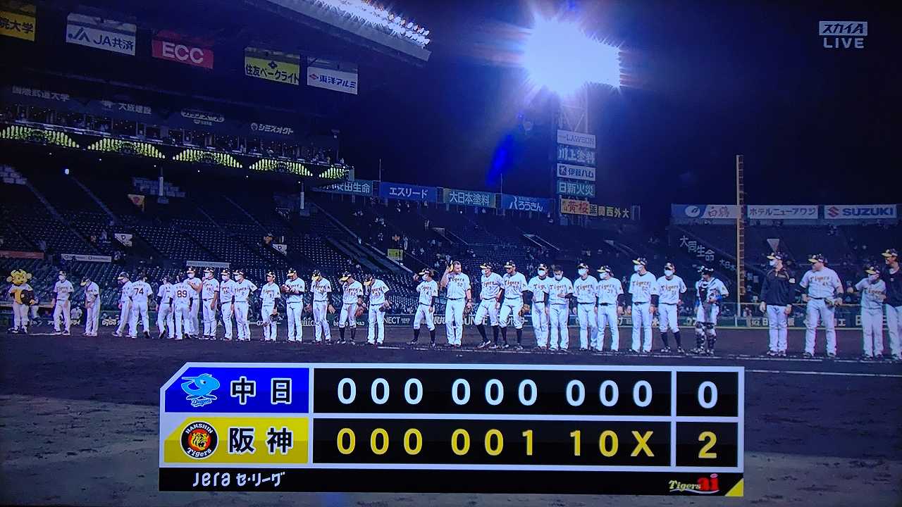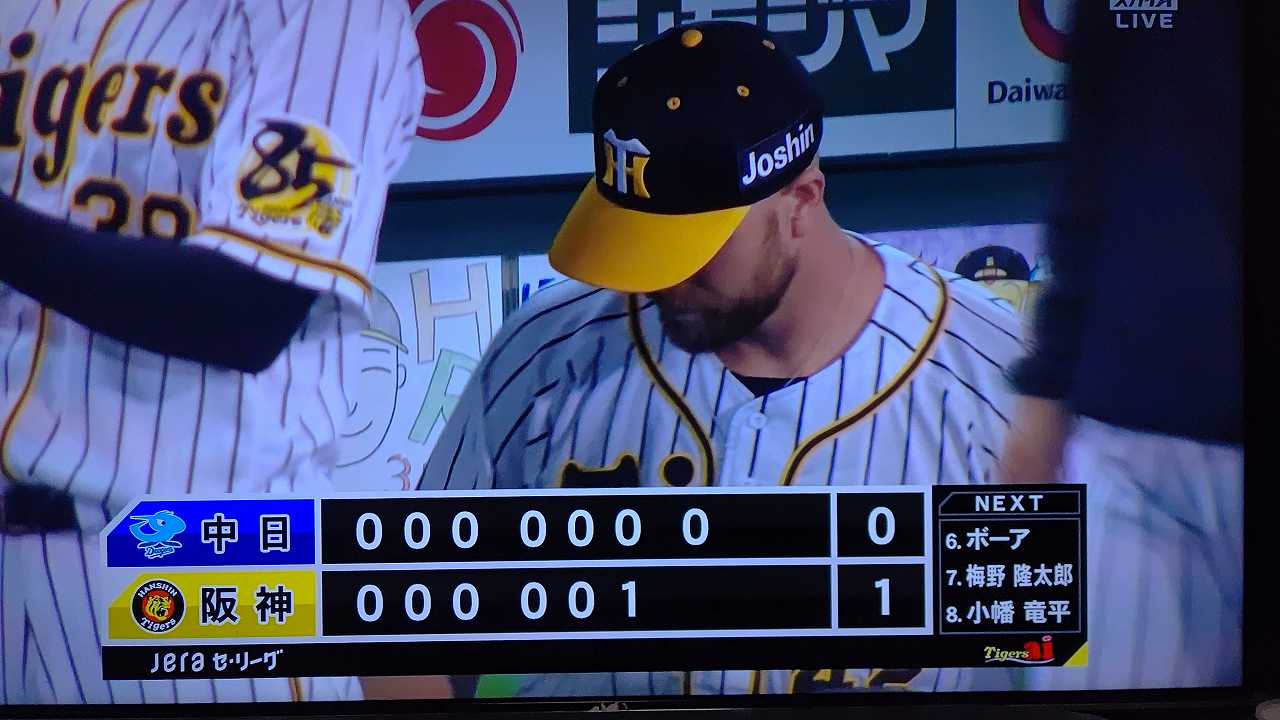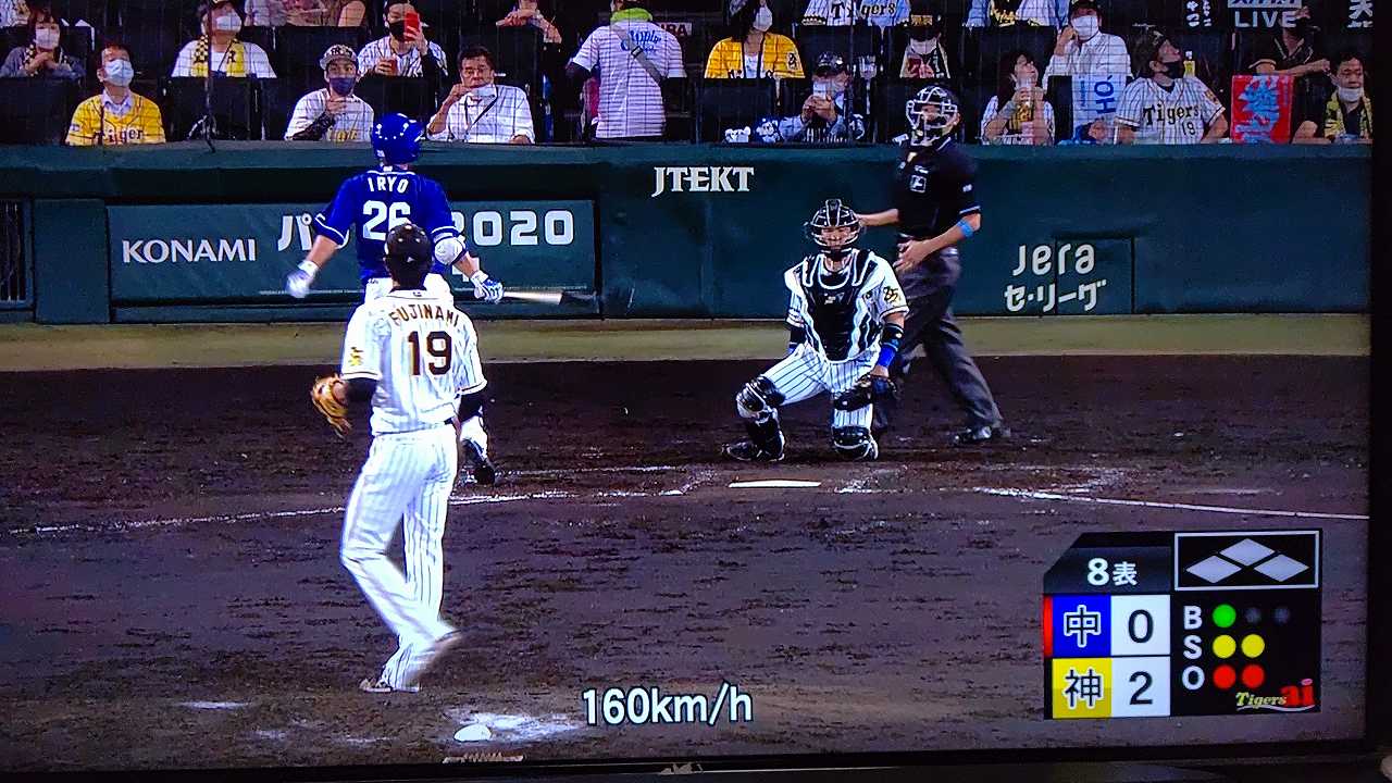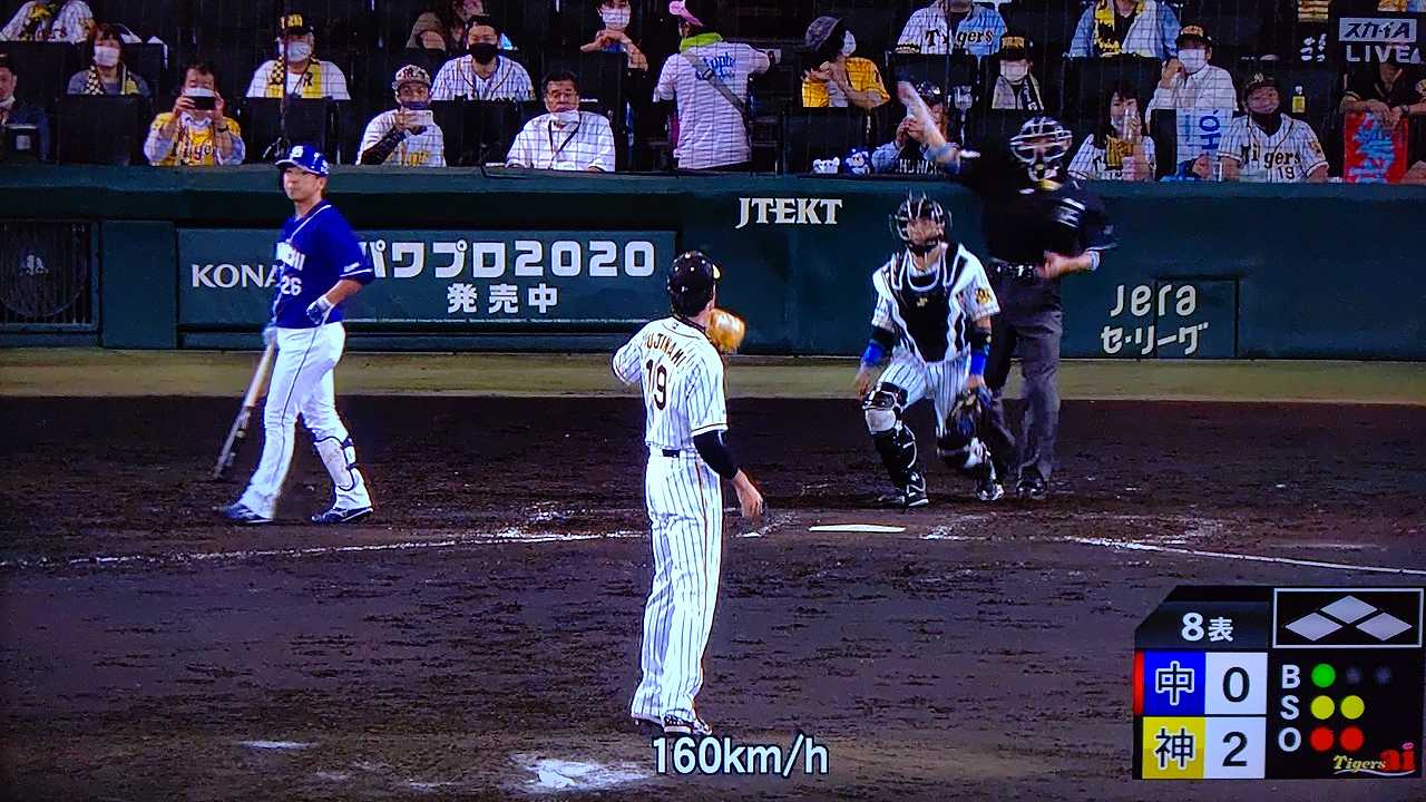 リードを2点に広げると8回は大歓声を浴びながら藤浪がマウンドへ。160キロを5度計測する迫力満点の投球で2つの三振を奪い三者凡退。最後はスアレスが締めて逃げ切りに成功、カード勝ち越しを決めた。