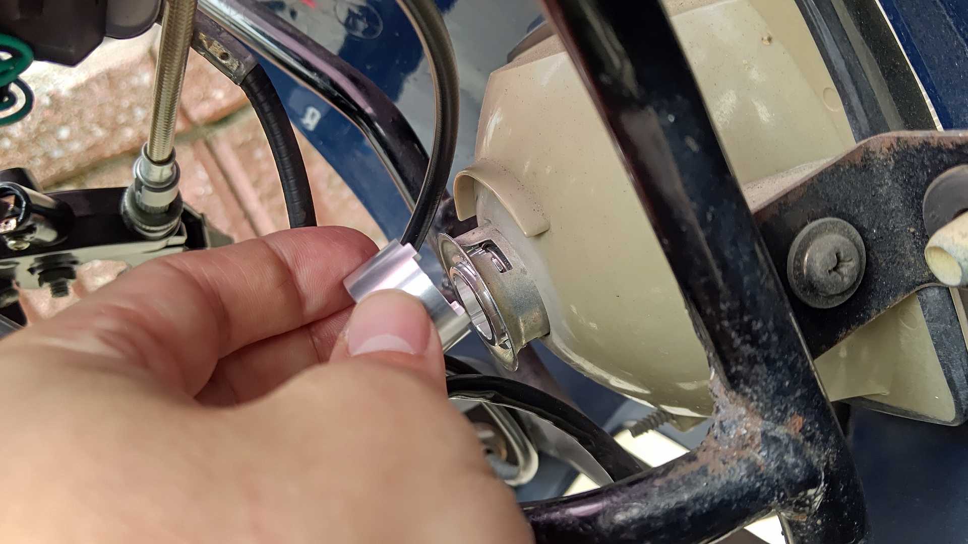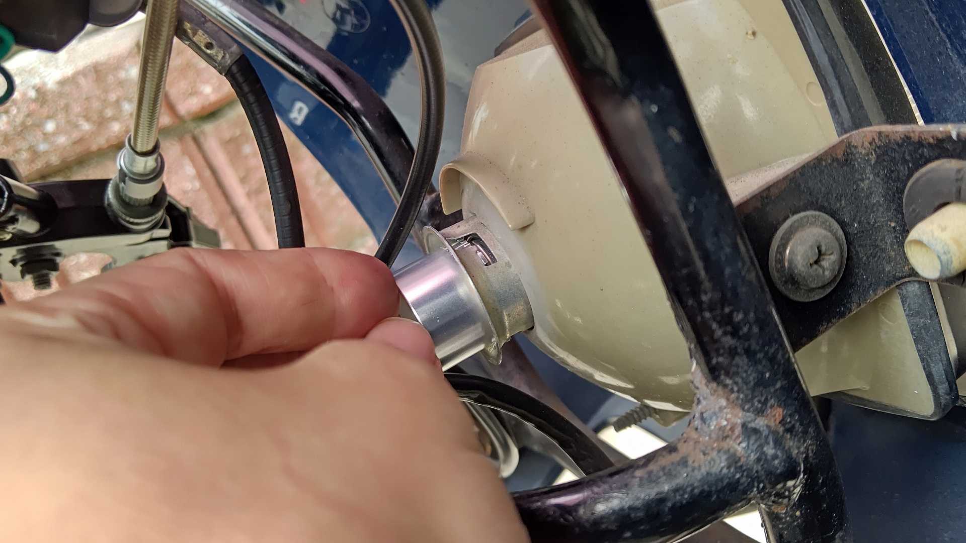 ステーと、ウインカー配線が邪魔で、入れにくい。。。