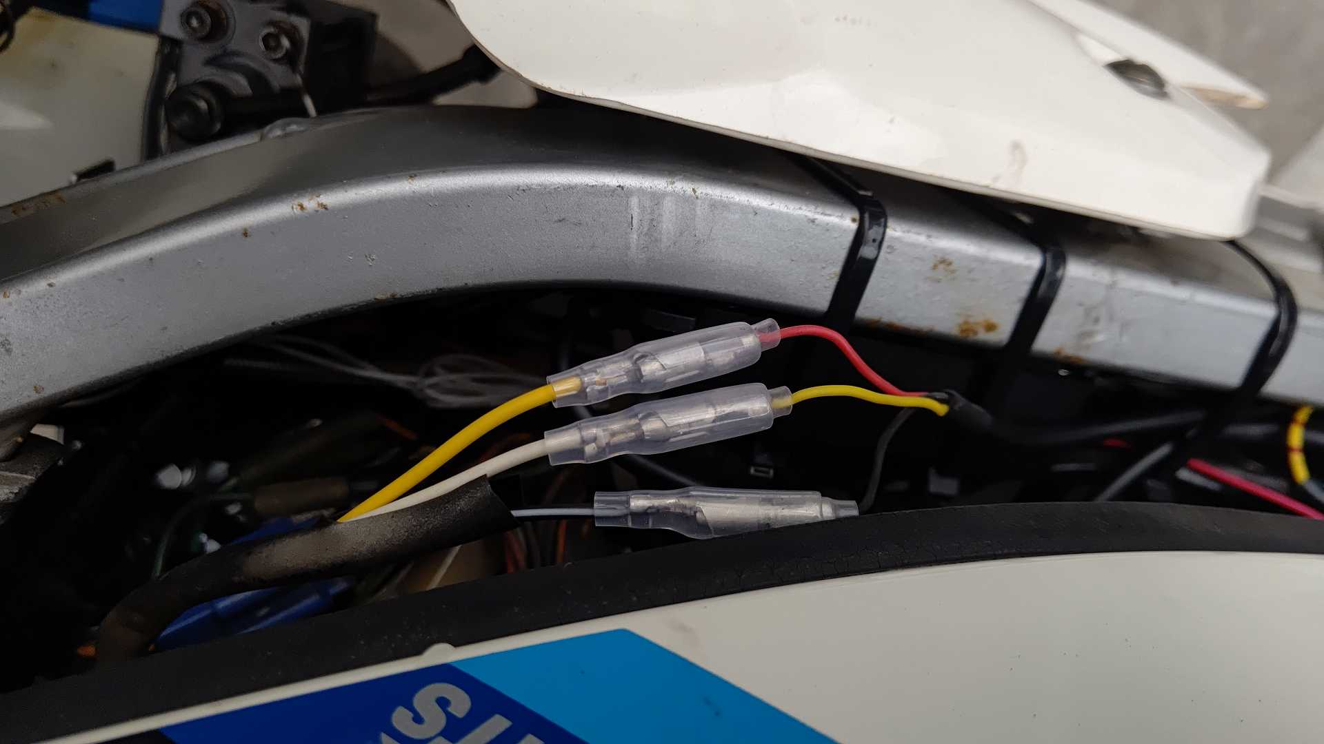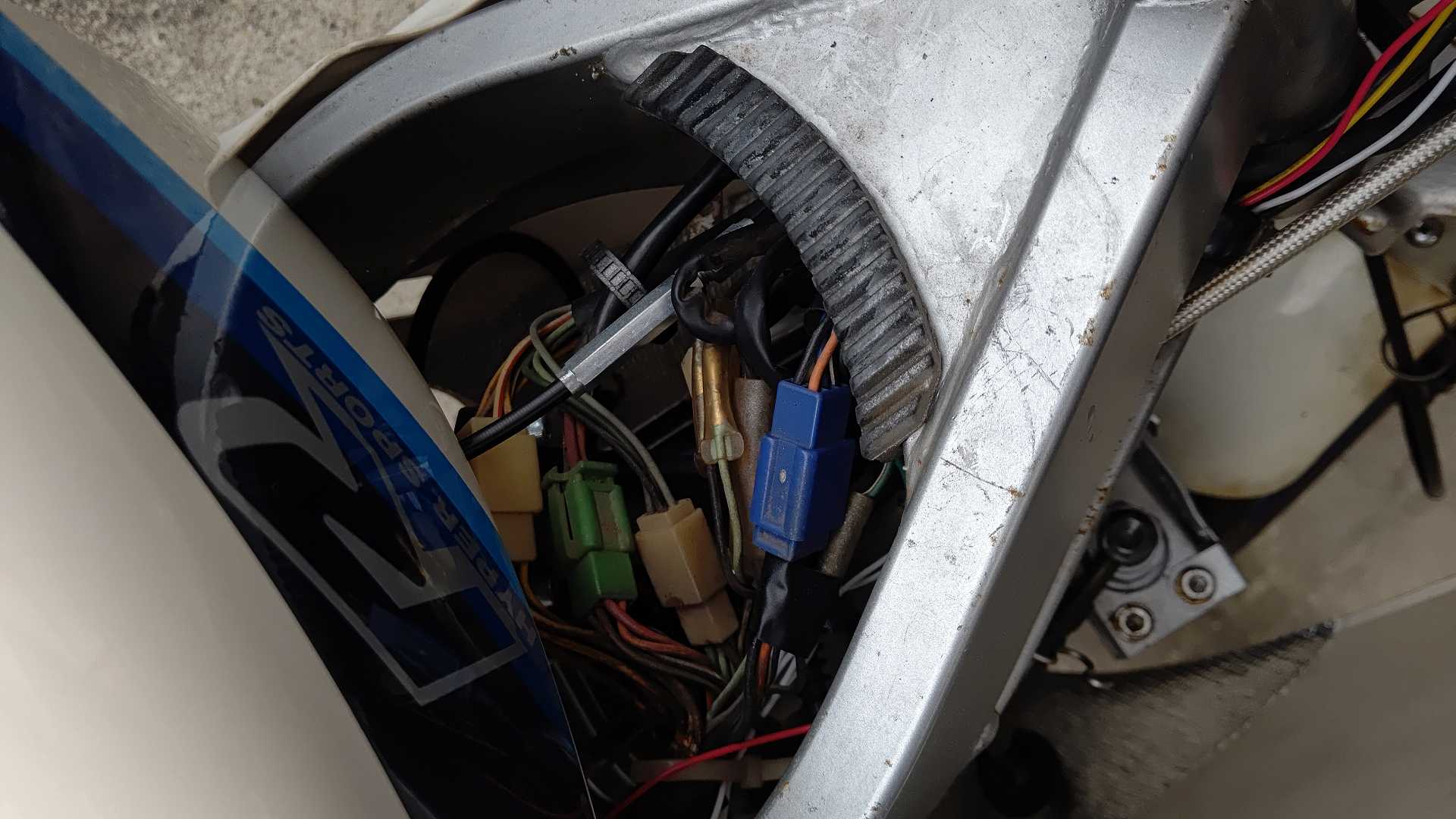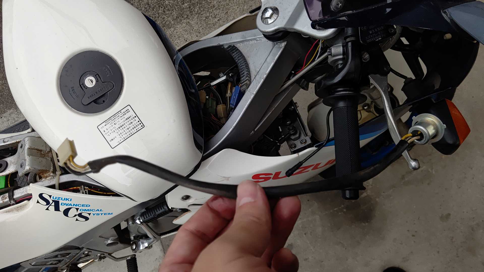 タンク下のハーネスがたくさんあるところ、ヘッドライトの3本が、繋がってるのがあるので、抜きます。