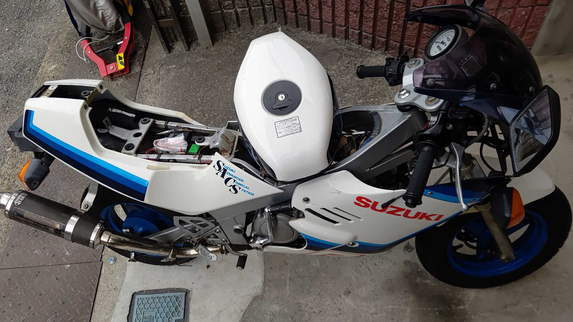 タンク外さないといけないので、リヤの工具とか出して、シート外して。。