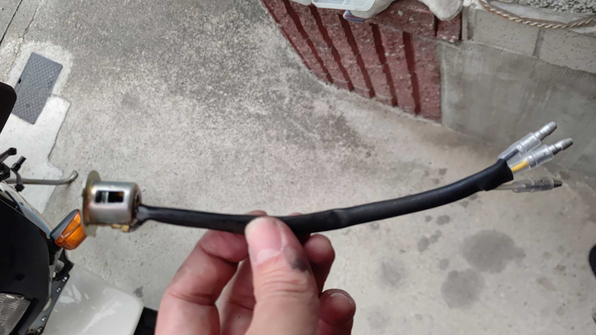 一応、ぶった切った、純正のハーネスのヘッドライト側に、オスのキボシを圧着しておきます。