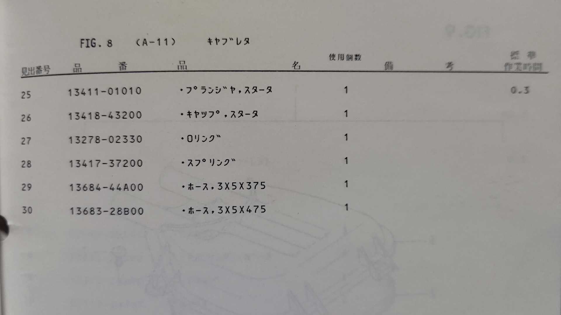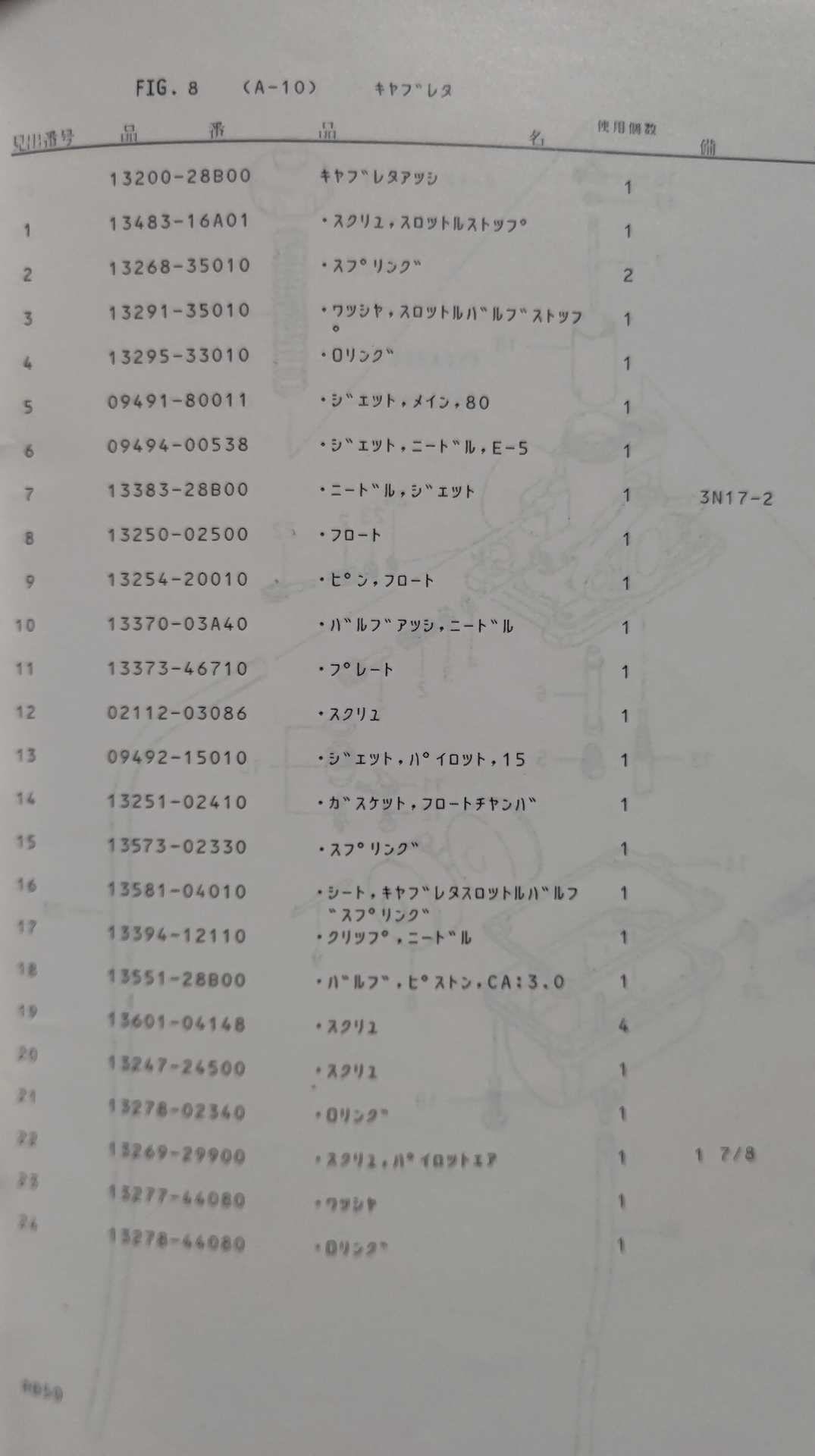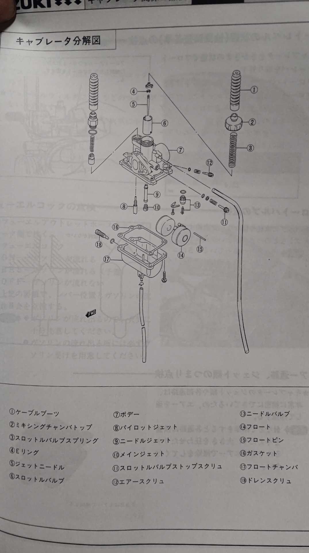 山田先生がサービスマニュアル見たいとのことだったので、キャブ周りを