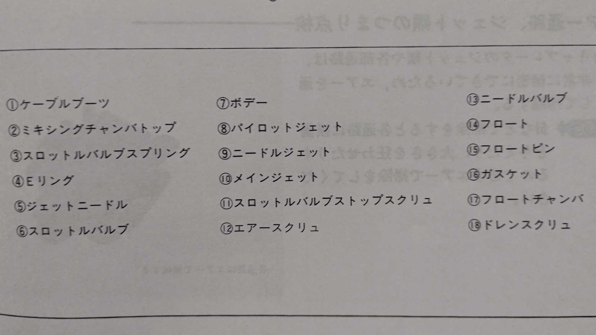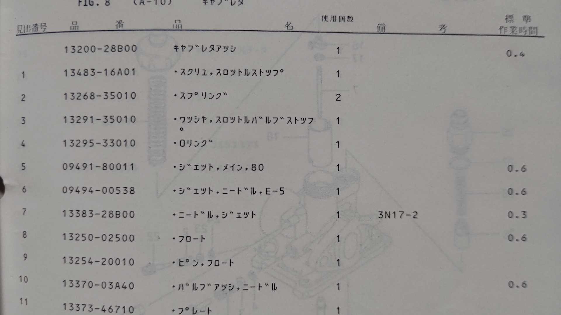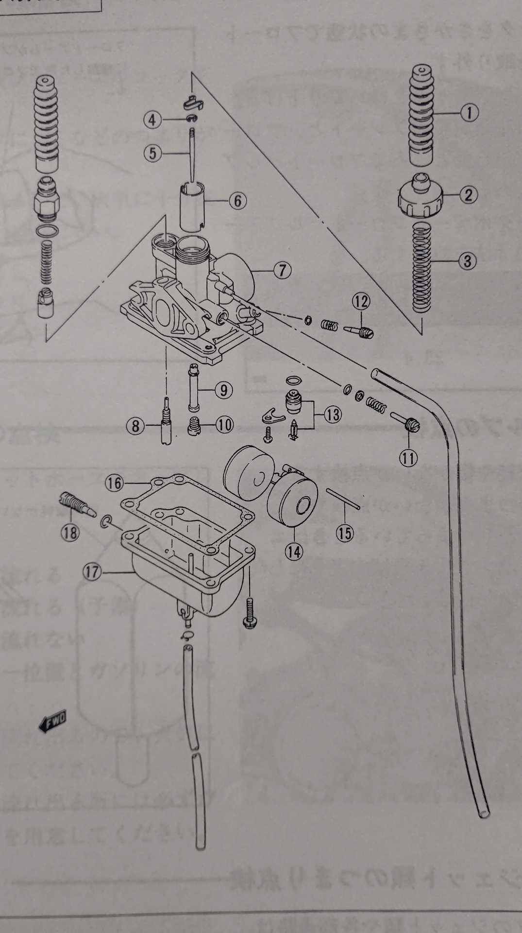 山田先生がサービスマニュアル見たいとのことだったので、キャブ周りを