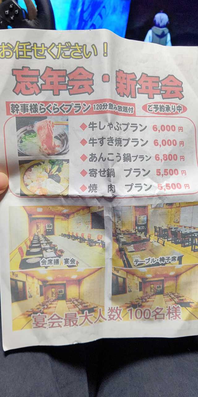 この御時世で、なかなか強気なビラ。。。ここの二階とかで宴会できるそうです!!