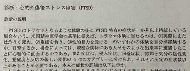 その後、ショックを抑えて仕事を続けていたA子さんだが、次第に「死にたい」と思うようになり、性 暴力被害者を支援するNPO法人に相談。紹介された病院の医師からは「重度のPTSD(心的外傷後ストレス障害)」と診断された。