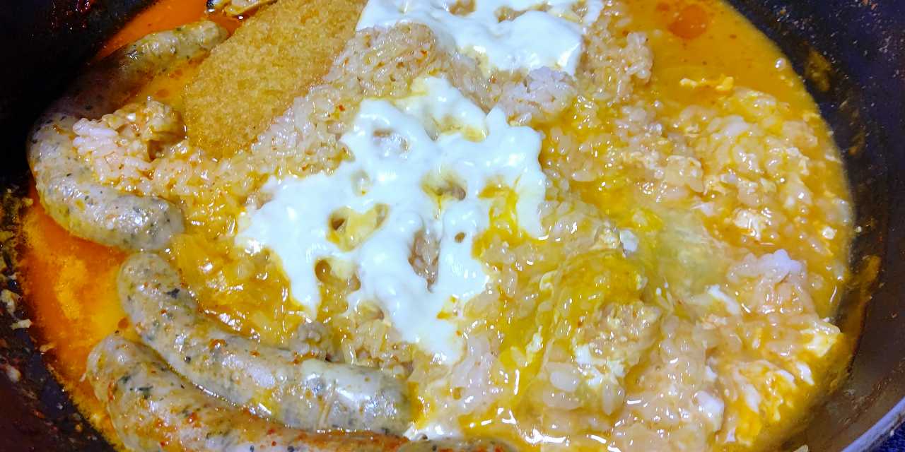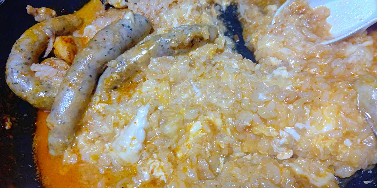 朝飯は、昨夜の残りに、御飯と、チーズと玉子で、リゾットに