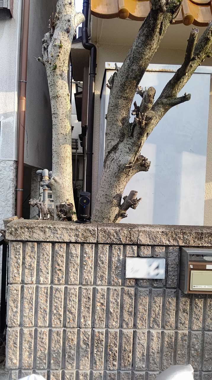 こんな感じのアングル。。。インターホン押す人の顔を、記録できるかなと思って、この角度にしたけど、もうちょい右側にするかなあ。。。右側から、カメラ盗まれても困るし。。。