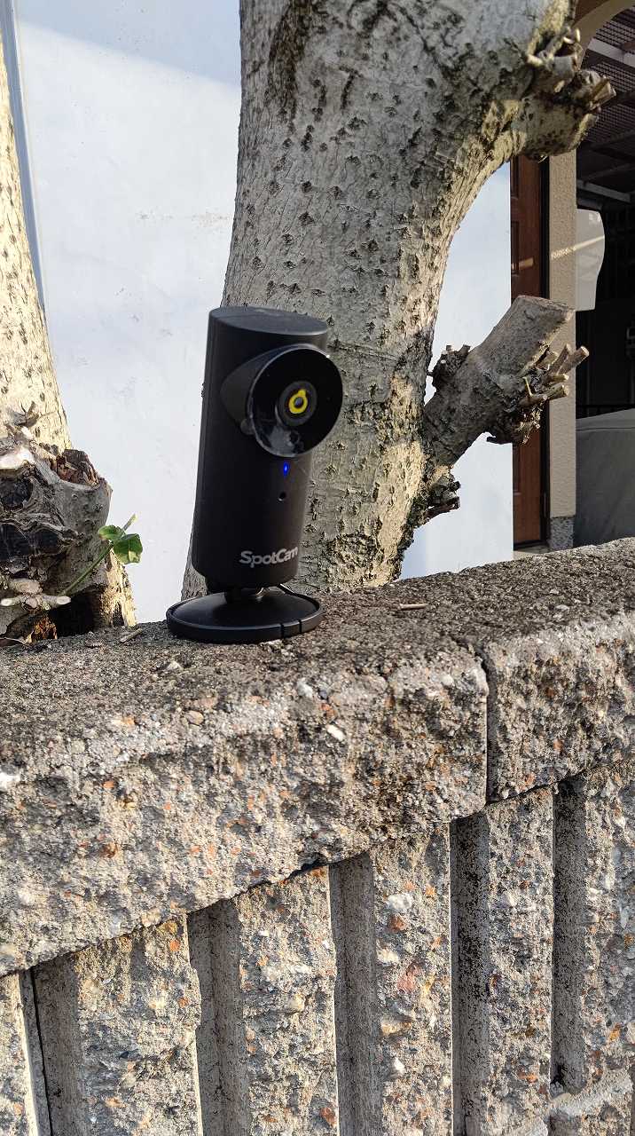 2年前に玄関に取り付けたSpotCam-FHD-PRO、防水で、スマフォやPCからカメラの映像見れて、動きや音声検出してメールや通知がくる。サーバーに保存されて、1日なら無料。有料サービスで、一月保存とかもできる。