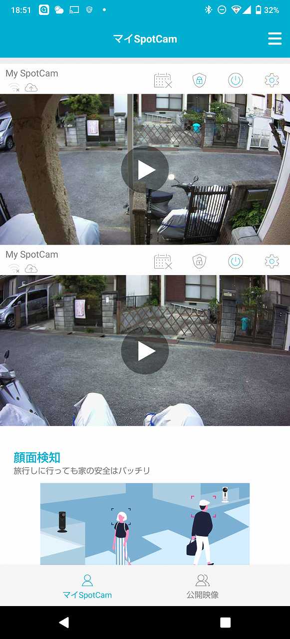 カメラ二つが、アプリから見えますよ。両方から通知も来ますし、イベントで確認できます。