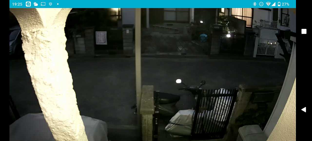 近所から、カメラ何個つけて盗撮でもしてるのか!ってクレーム来たらいやなので、前の部分の青いLED、アプリからの設定で消してやりました。玄関上のほうは点けてます。