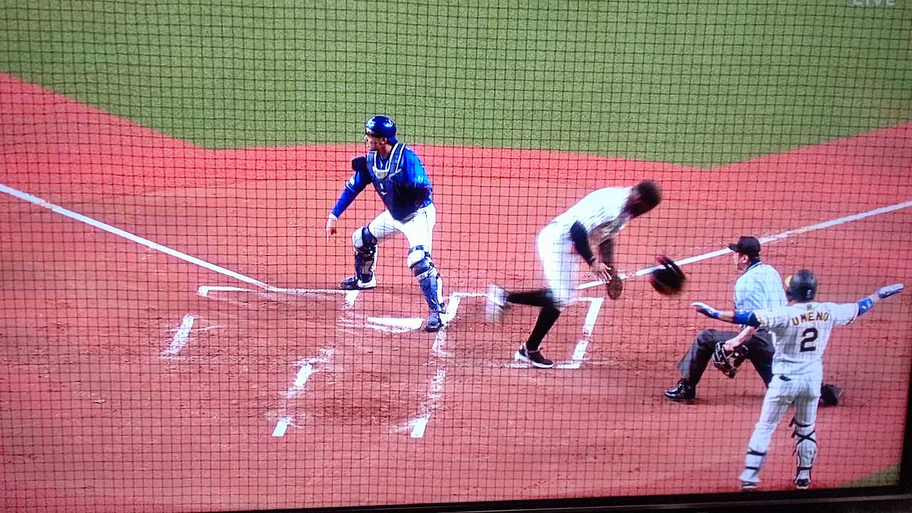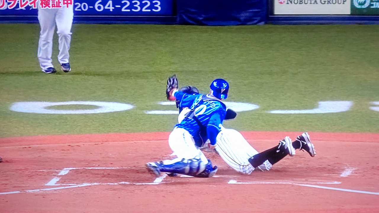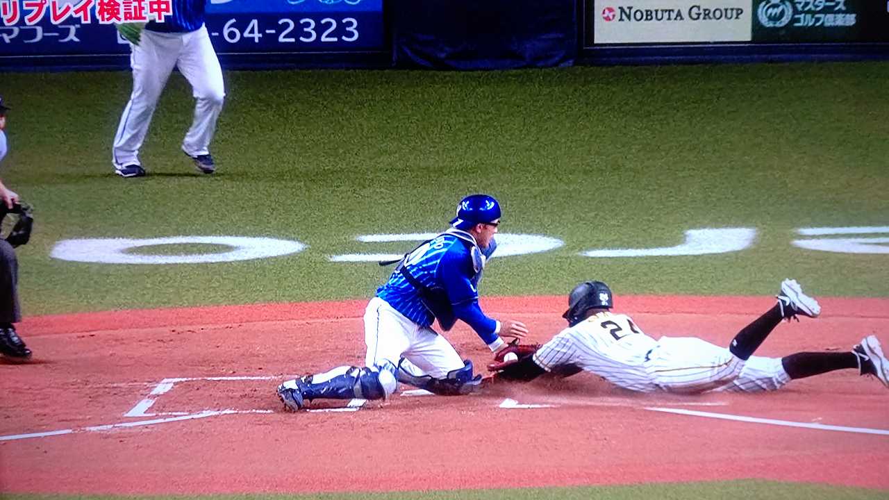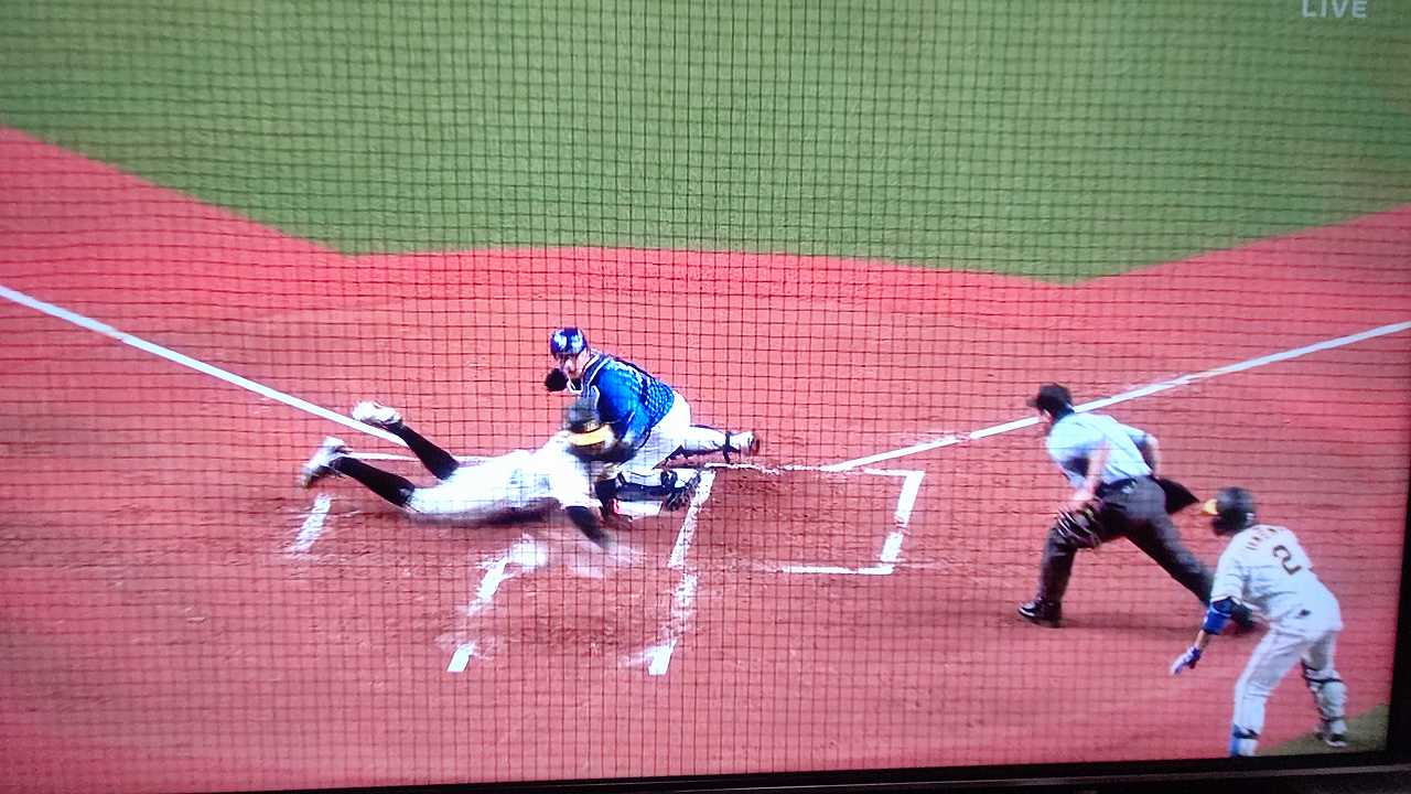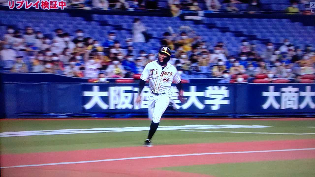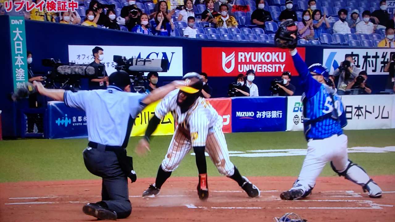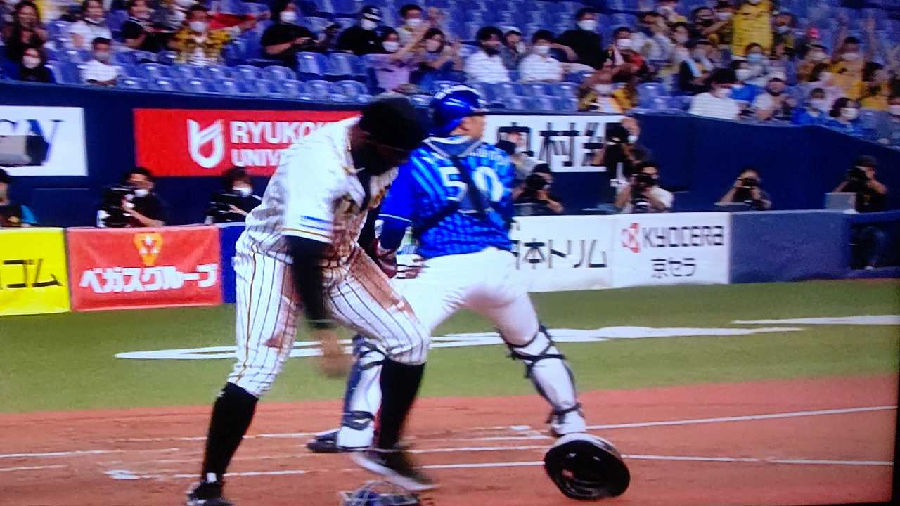 2回2死からロハス・ジュニアがレフト前に安打を放つ。続く木浪が左中間の真ん中に打球を飛ばすと、ロハス・ジュニアは激走。3塁ベースを蹴り、一直線にホーム突入を目指す。頭から滑り込んで先制のホームへ生還した。