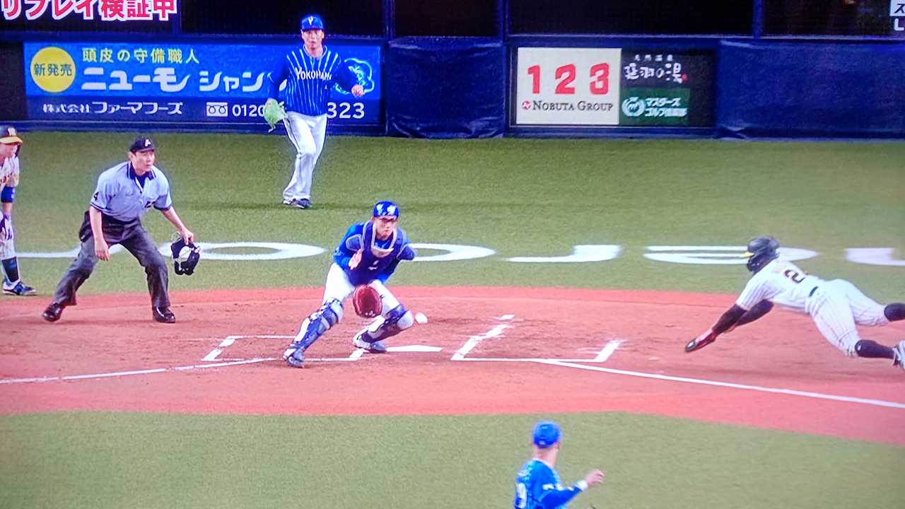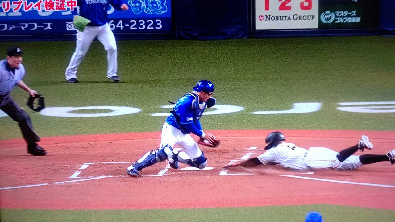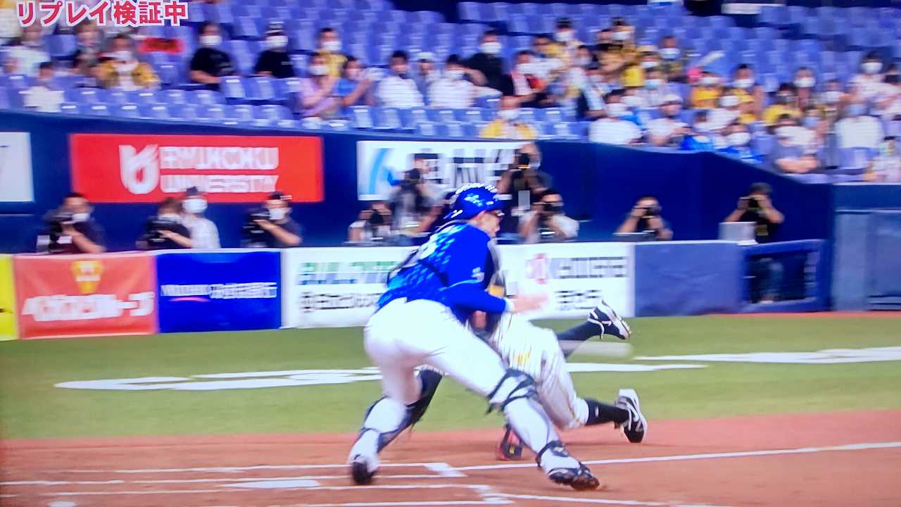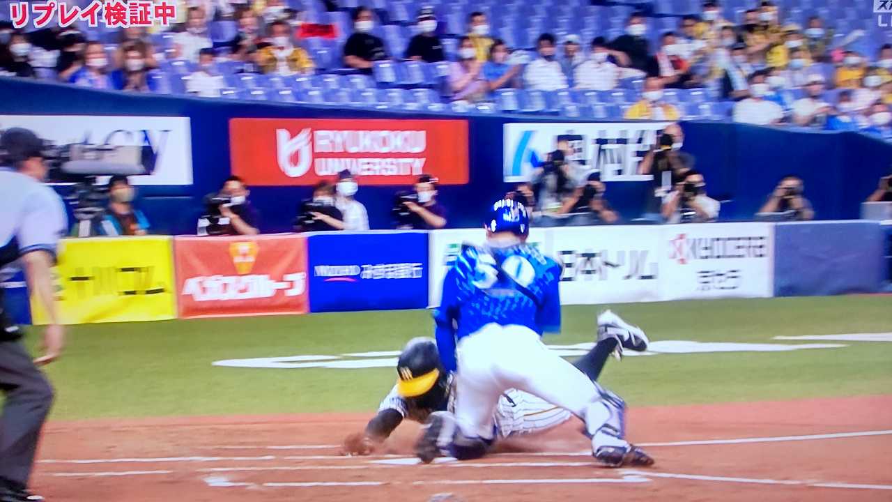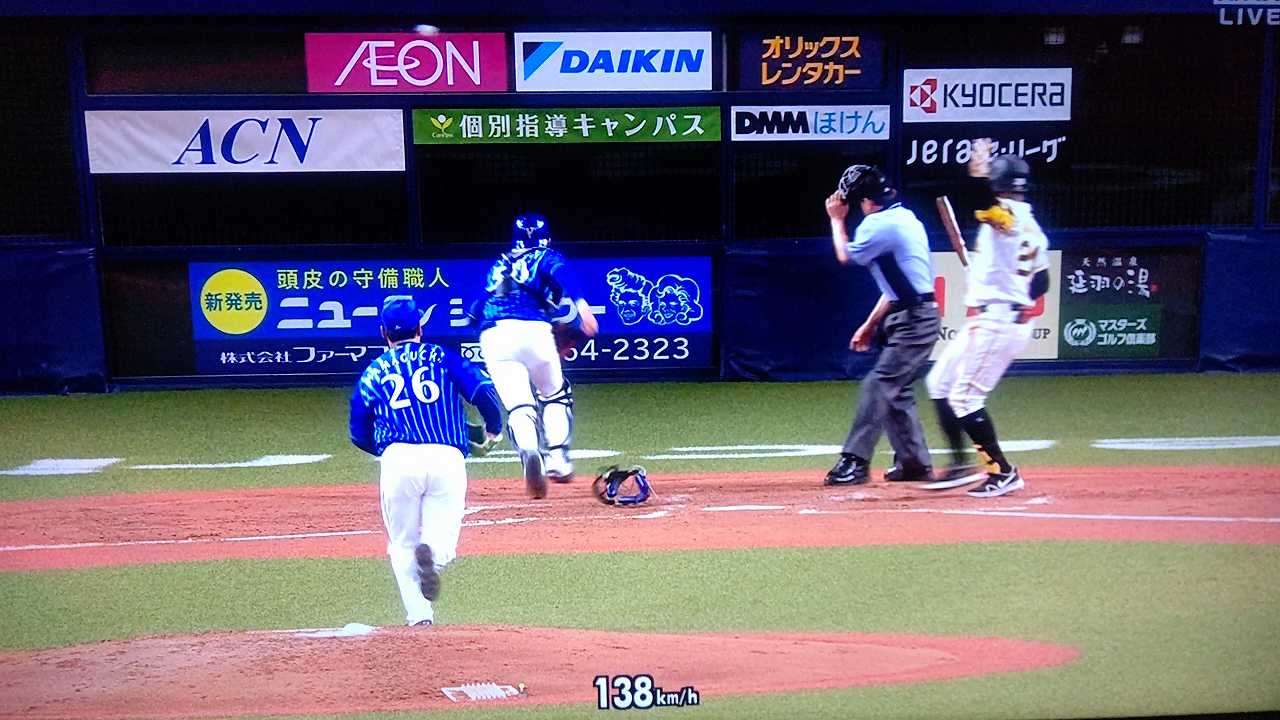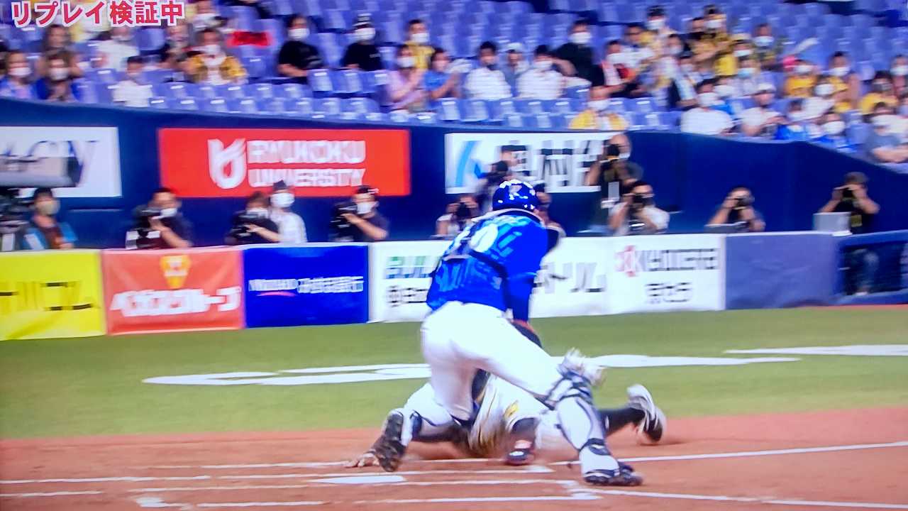 2回2死からロハス・ジュニアがレフト前に安打を放つ。続く木浪が左中間の真ん中に打球を飛ばすと、ロハス・ジュニアは激走。3塁ベースを蹴り、一直線にホーム突入を目指す。頭から滑り込んで先制のホームへ生還した。