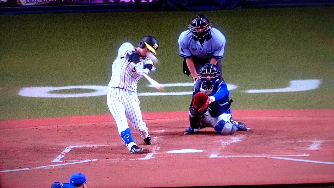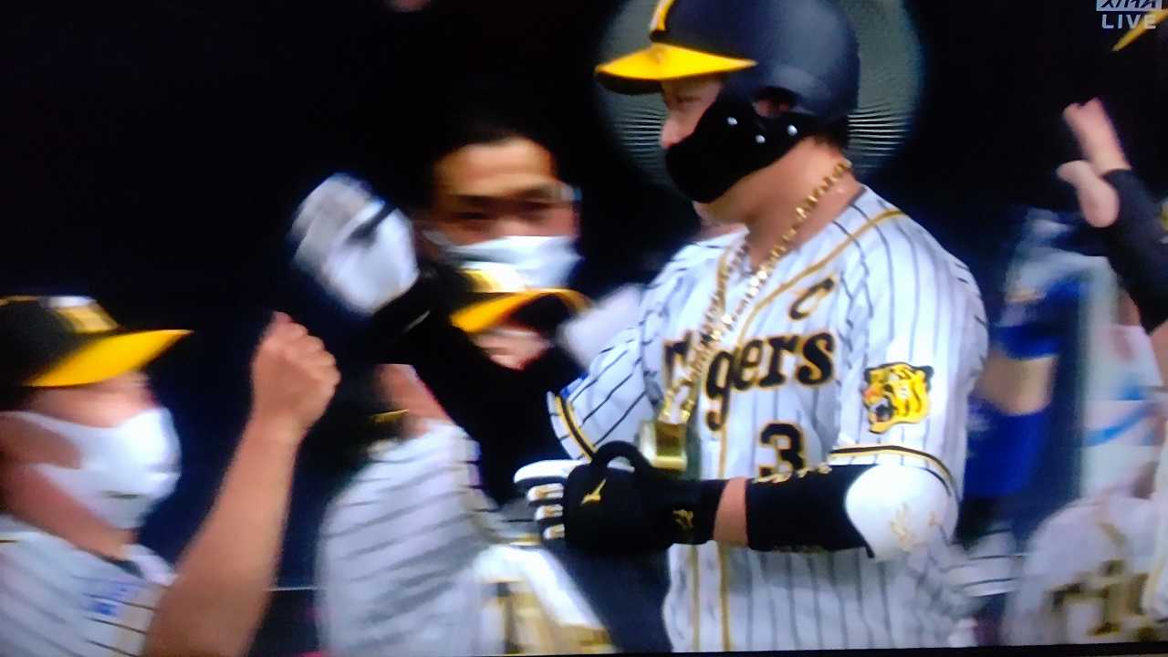打ったのはフォーク。青柳がいつも通りしっかりと投げてくれているし、近本も塁に出て、中野が素晴らしいバントで繋いでくれたから、1点でも多く取りたい中で打つことができて良かったよ。