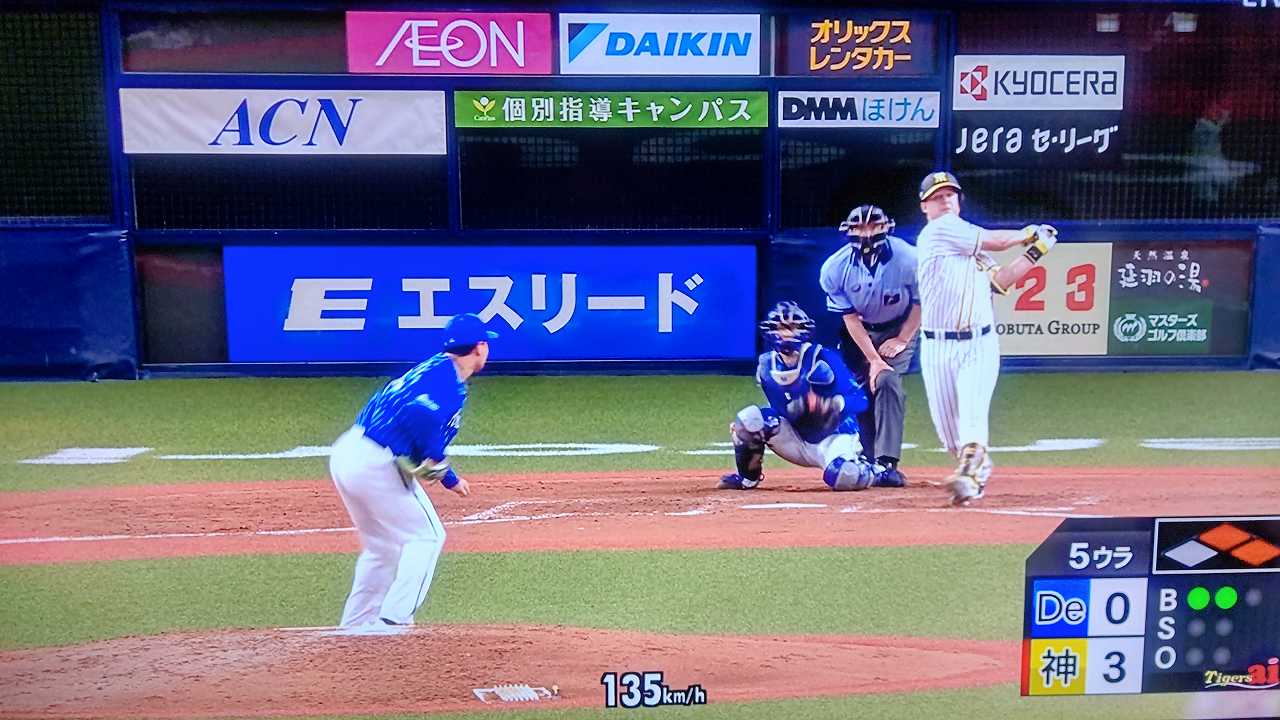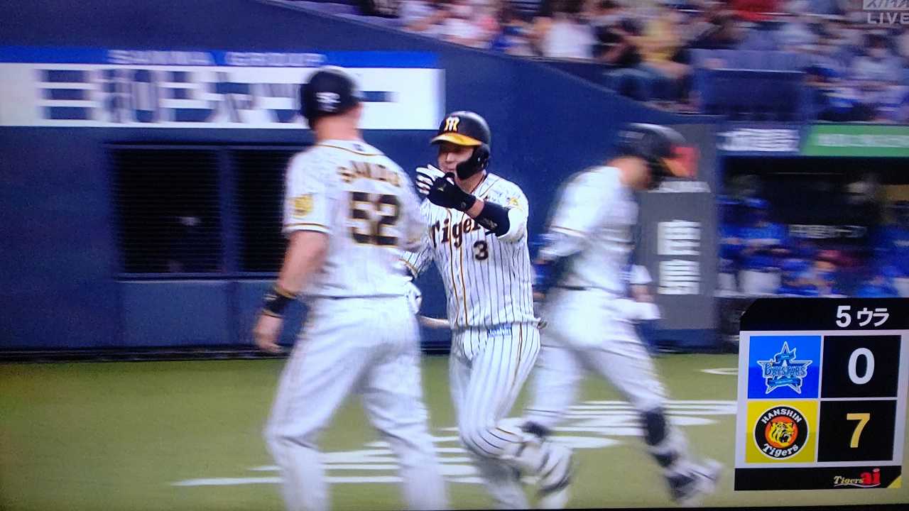 試合の主導権を握っても攻撃の手を緩めない。5回に近本の安打と中野のセーフティバントで無死1、2塁とし、サンズの適時2塁打で2点を追加。さらに大山が右中間へ2点本塁打を叩き込んだ。強烈な中押しで4点を加えスコアは7-0。前半で試合を決めた。