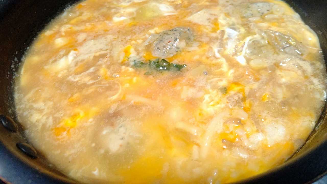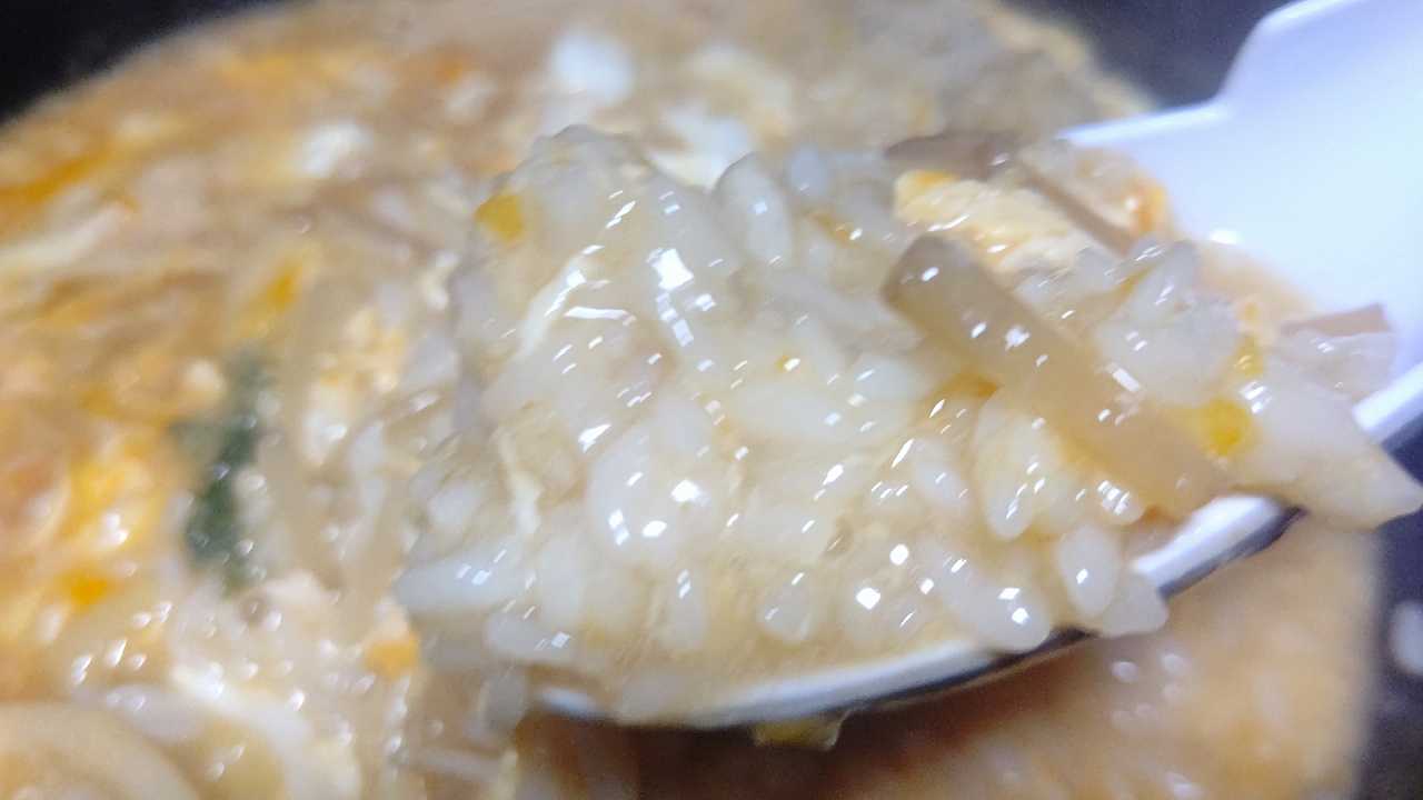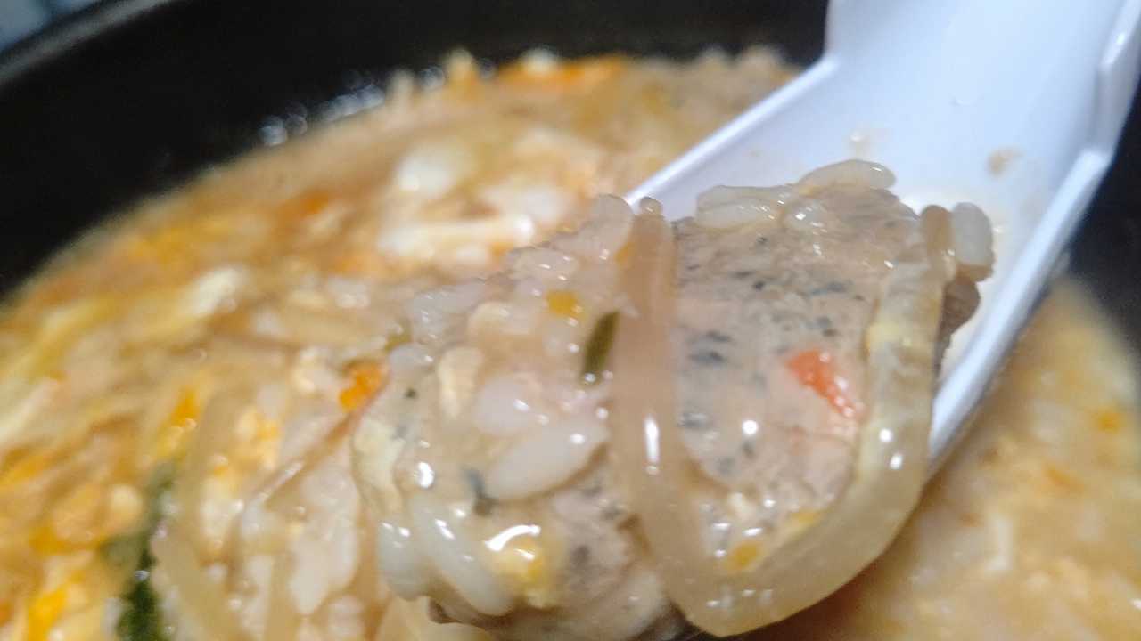もつなべの残りで雑炊作ってちょっと遅い昼飯