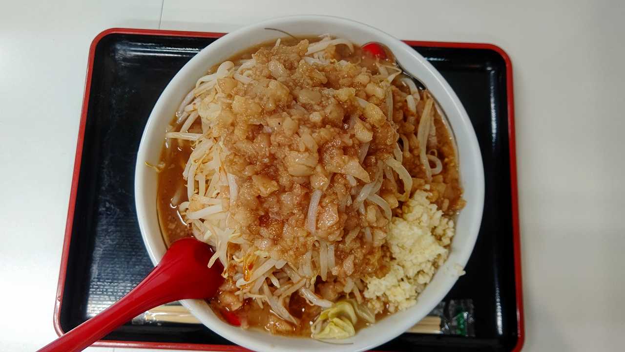 すごい、もやしと背脂の山!!!