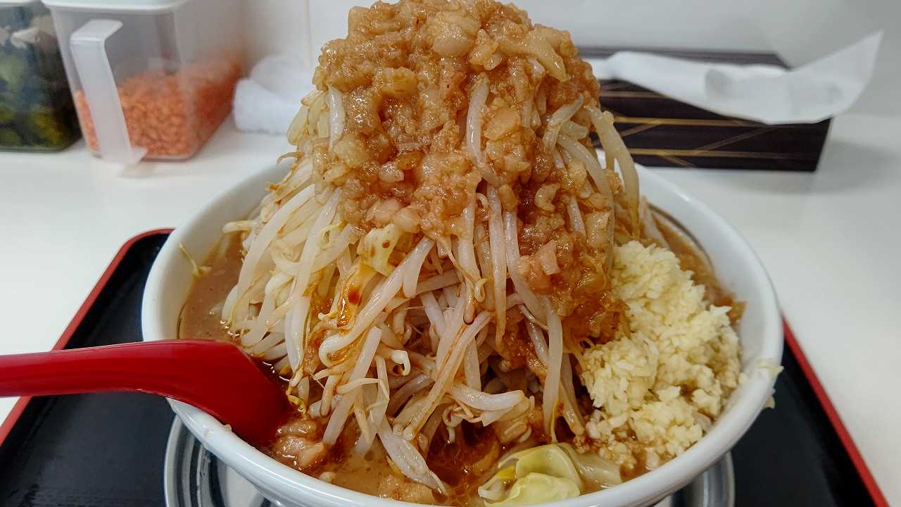 二郎系とあって、こちらもとってもボリューム満点!にんにくもたっぷりで、味も量も満足感がすごいです!!