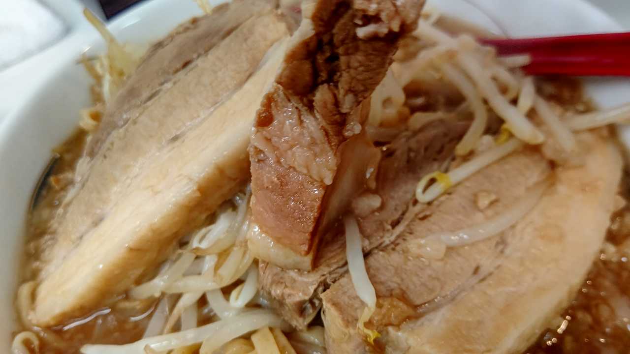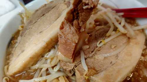 これも!他のとこみたいに、上に乗ってるより、スープに浸かってるので、食べやすいし美味しい。トロトロではないけど、食いでがある、ギシギシと食感ある厚いチャーシュー!なかなか美味しいですよ!