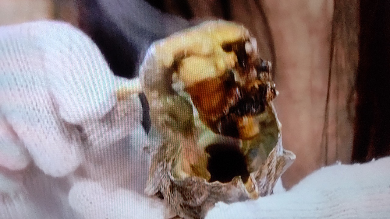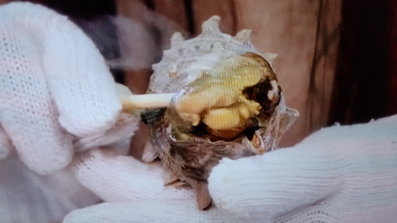 にゅるって、丸まった肝が、割りばしさしてる側から出てきましたね。。。