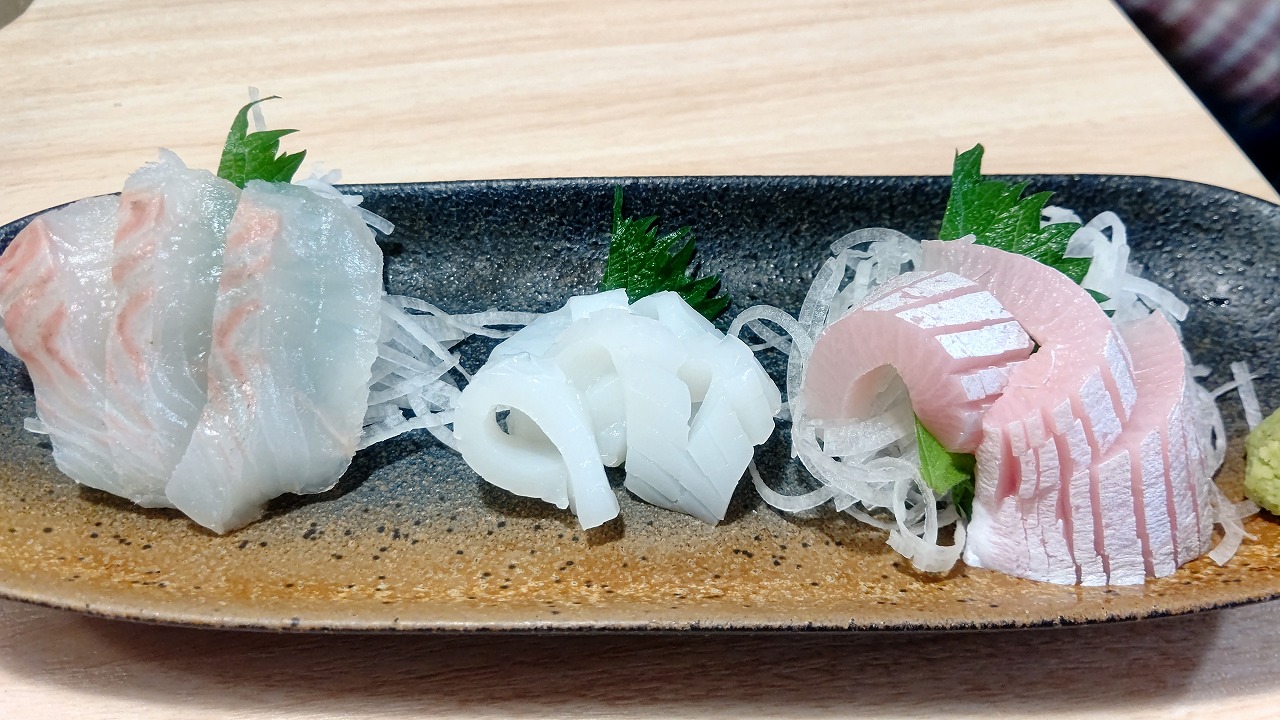 造り 750円は、どれもおいしいです。食感もいいなあ。。。わさびも、これだけで呑めるな。。。
