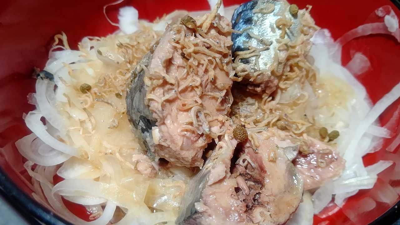 今晩は、鯖缶水煮に、ポン酢と、ちりめん山椒で