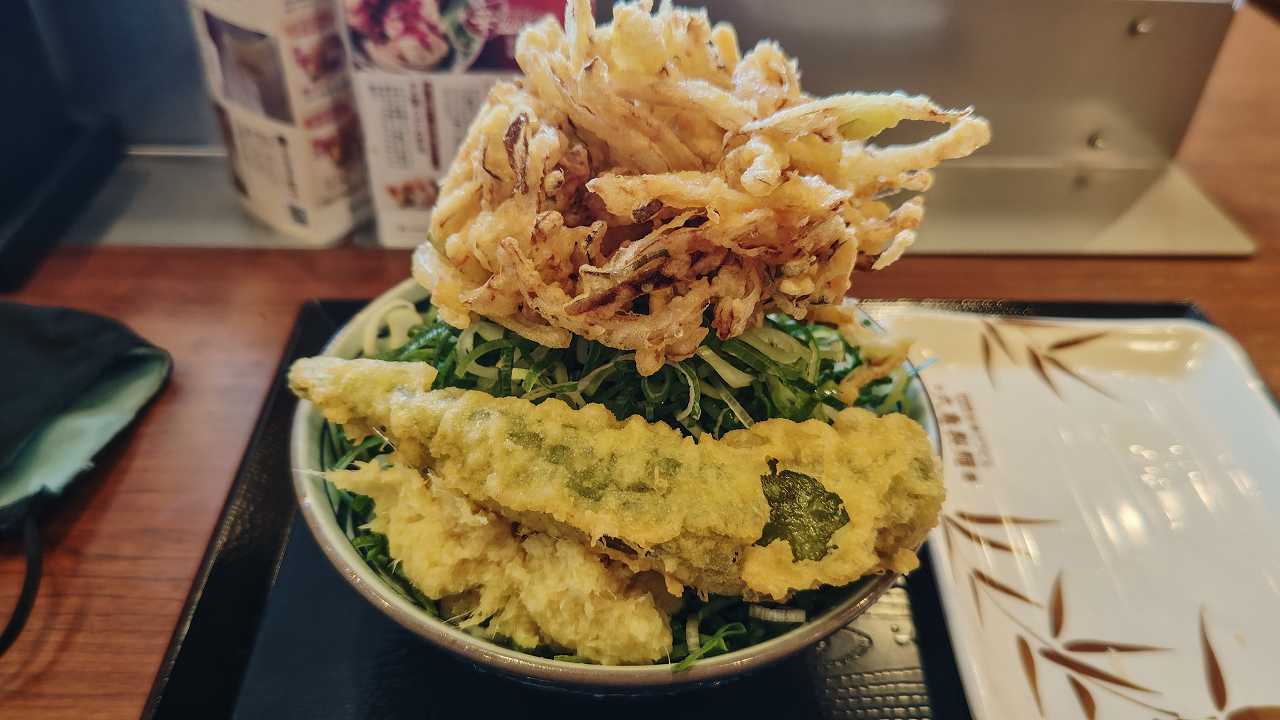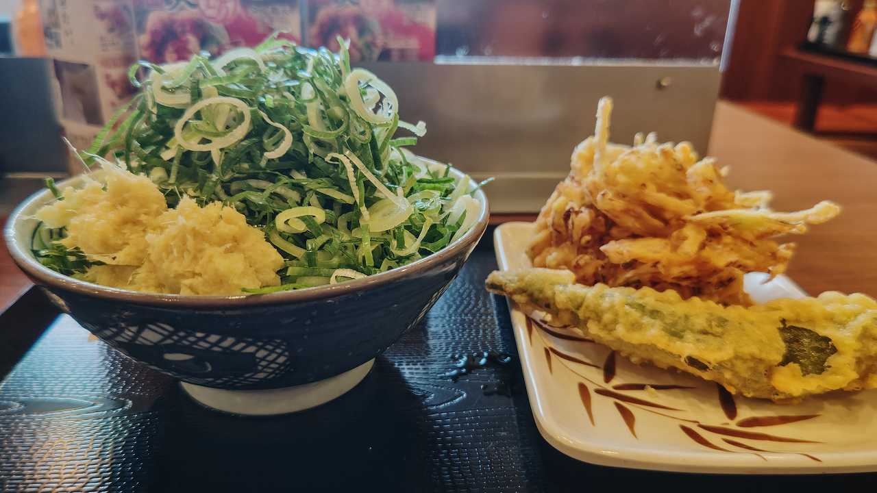 冷かけ並に、野菜かき揚げ、ちょい贅沢で、万願寺