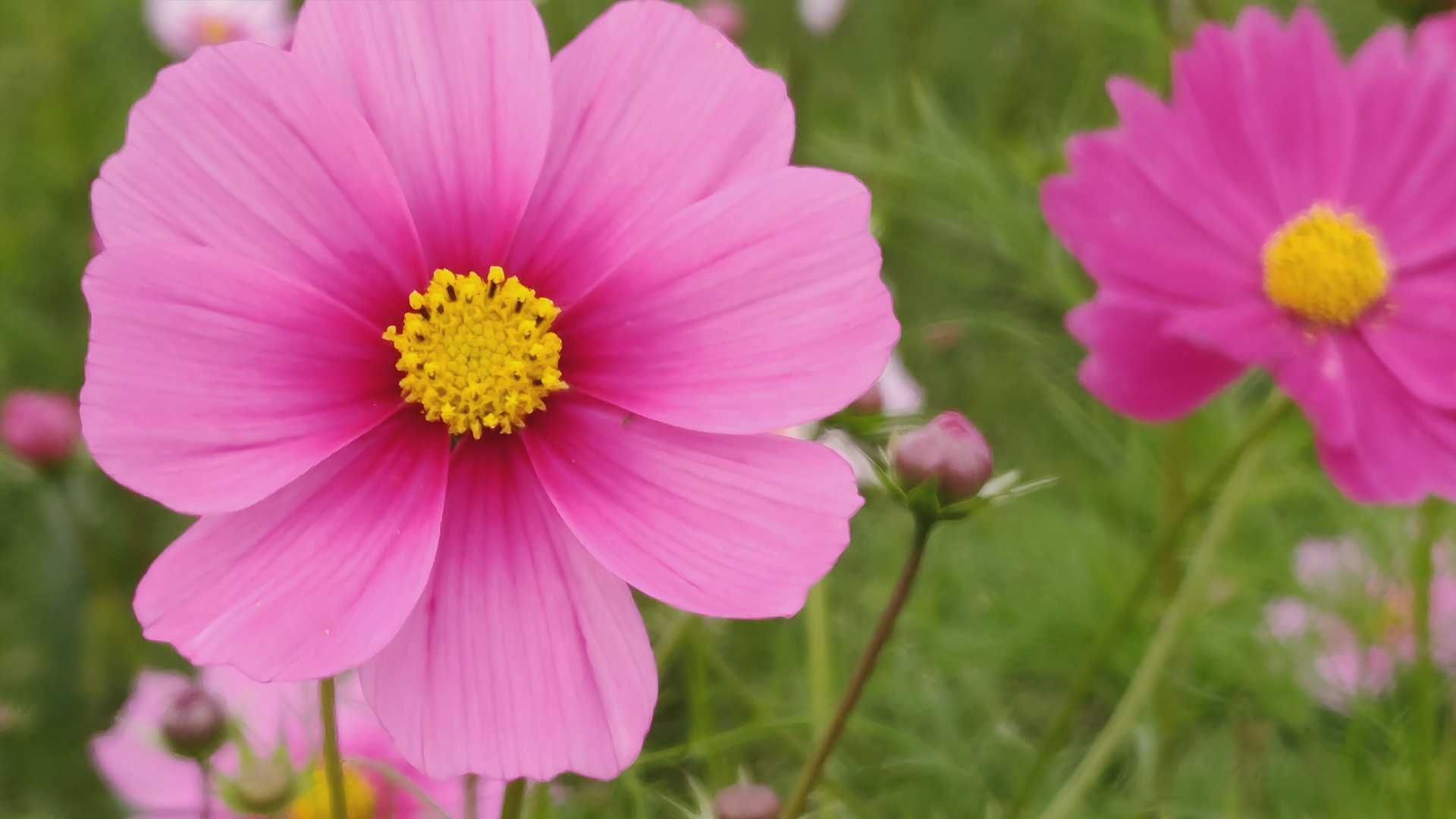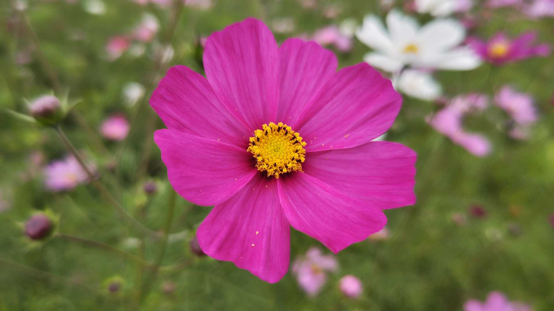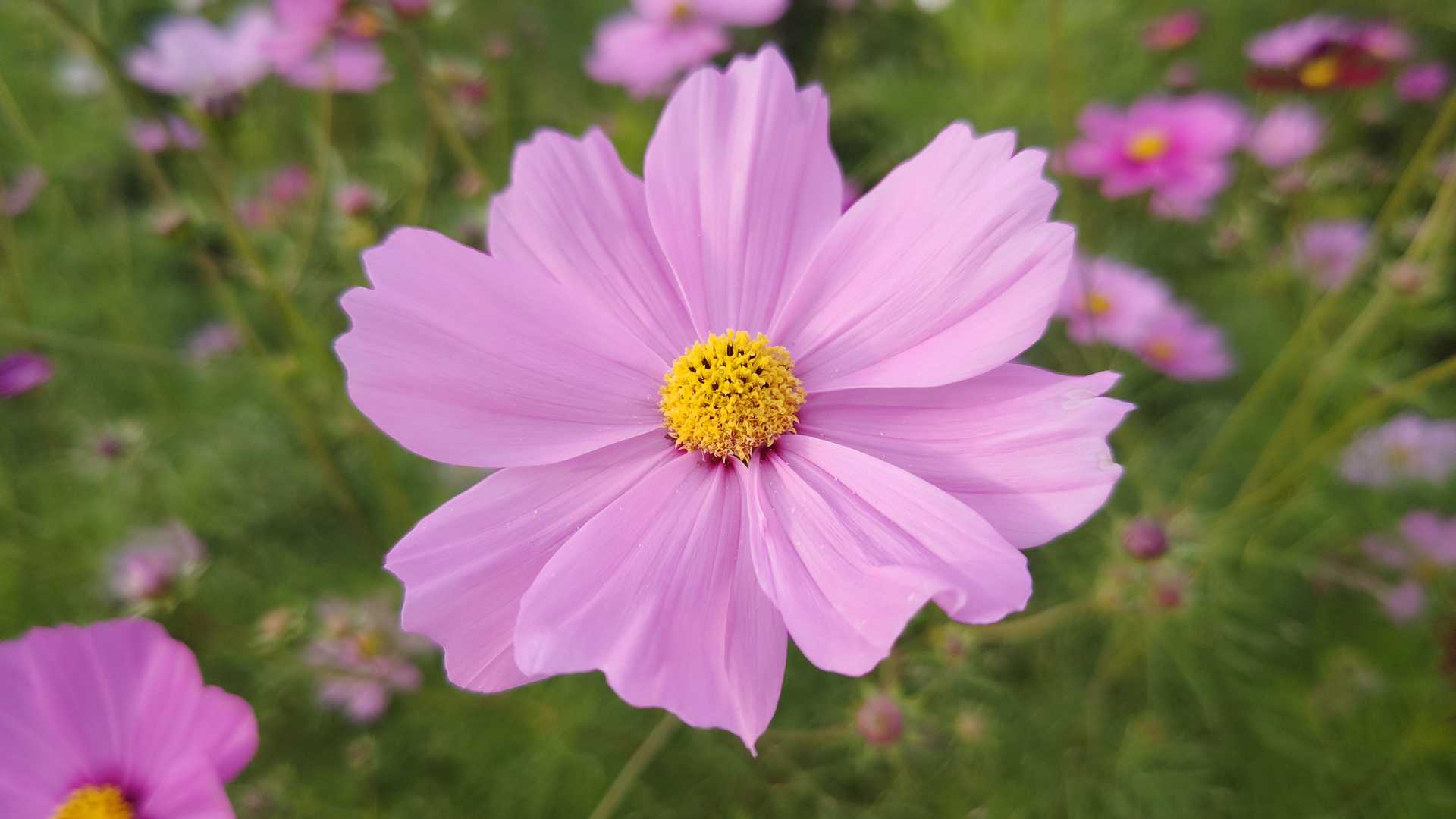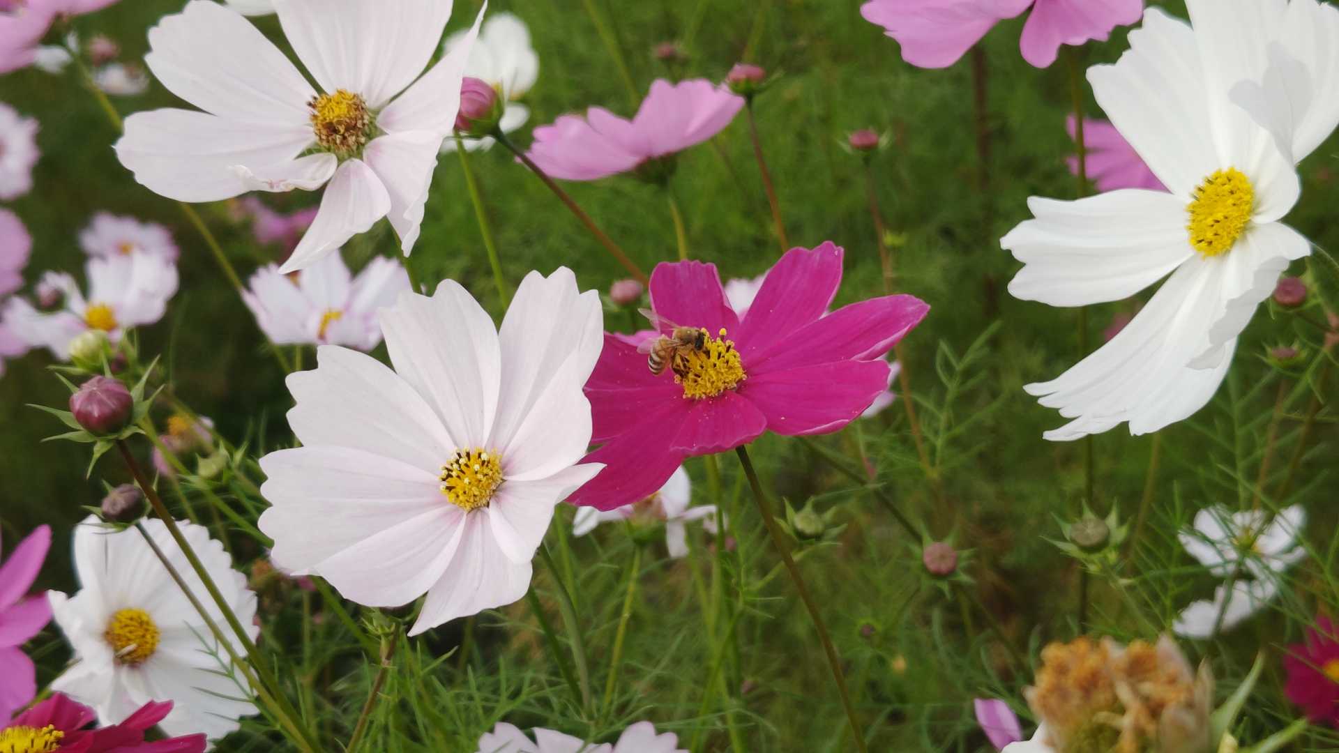 中宮寺跡周辺はコスモス畑が広がり、開花時期には多くの人が訪れています。