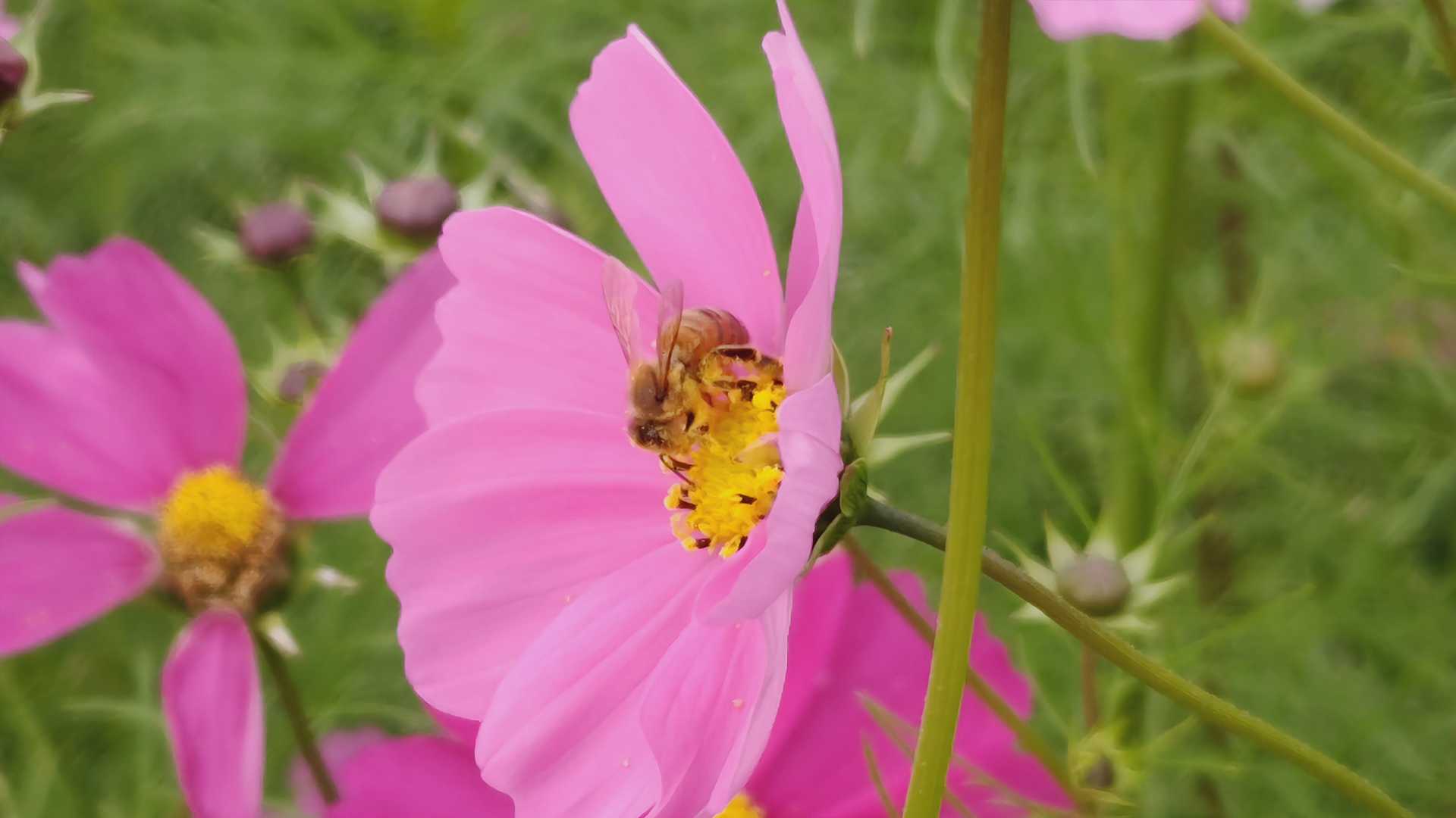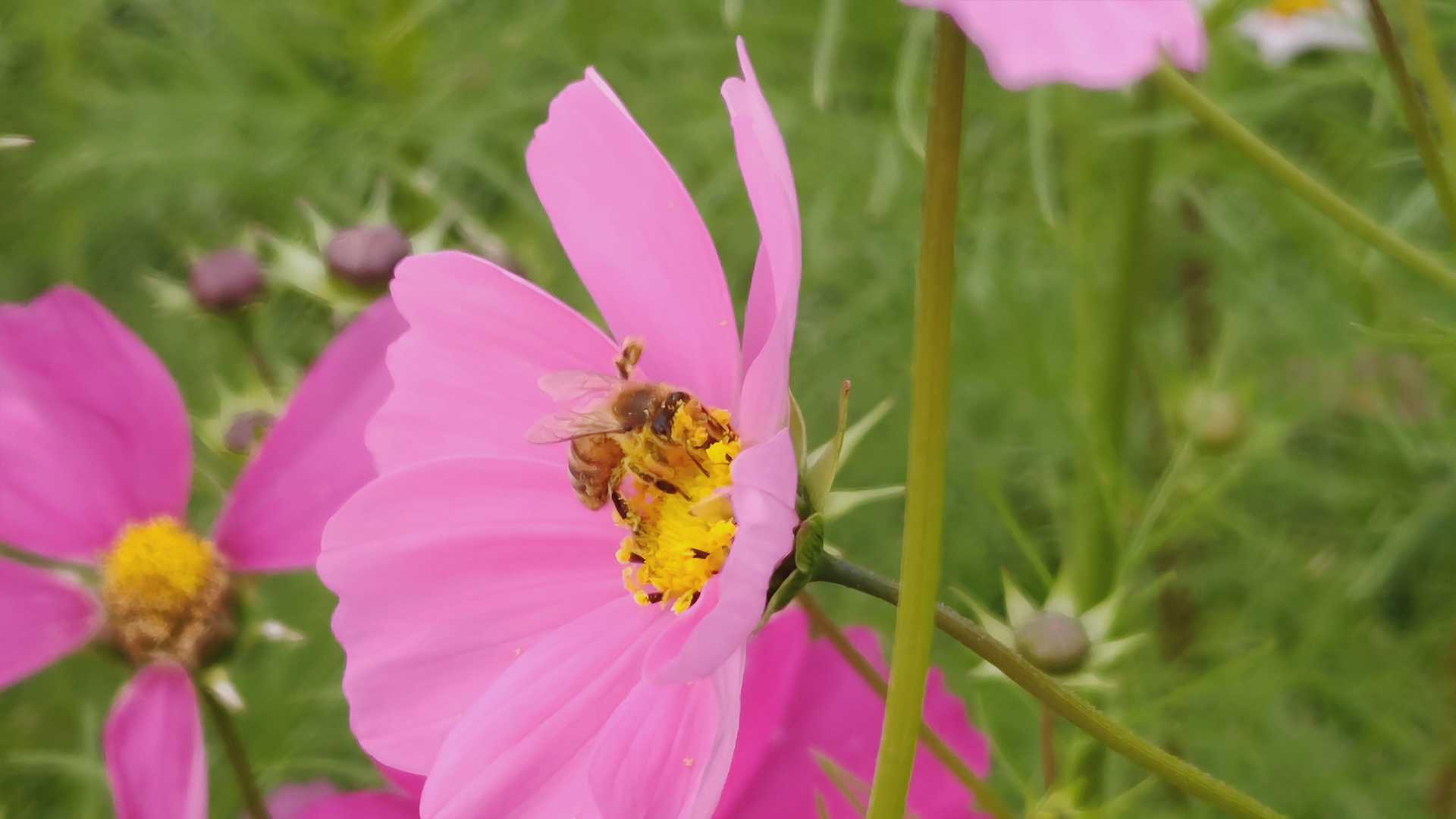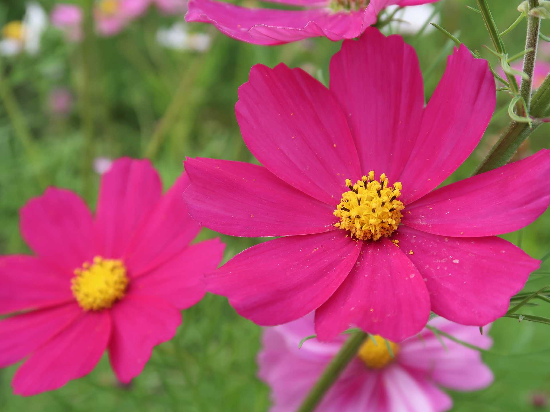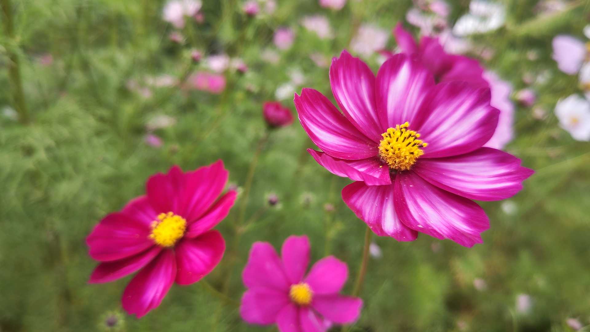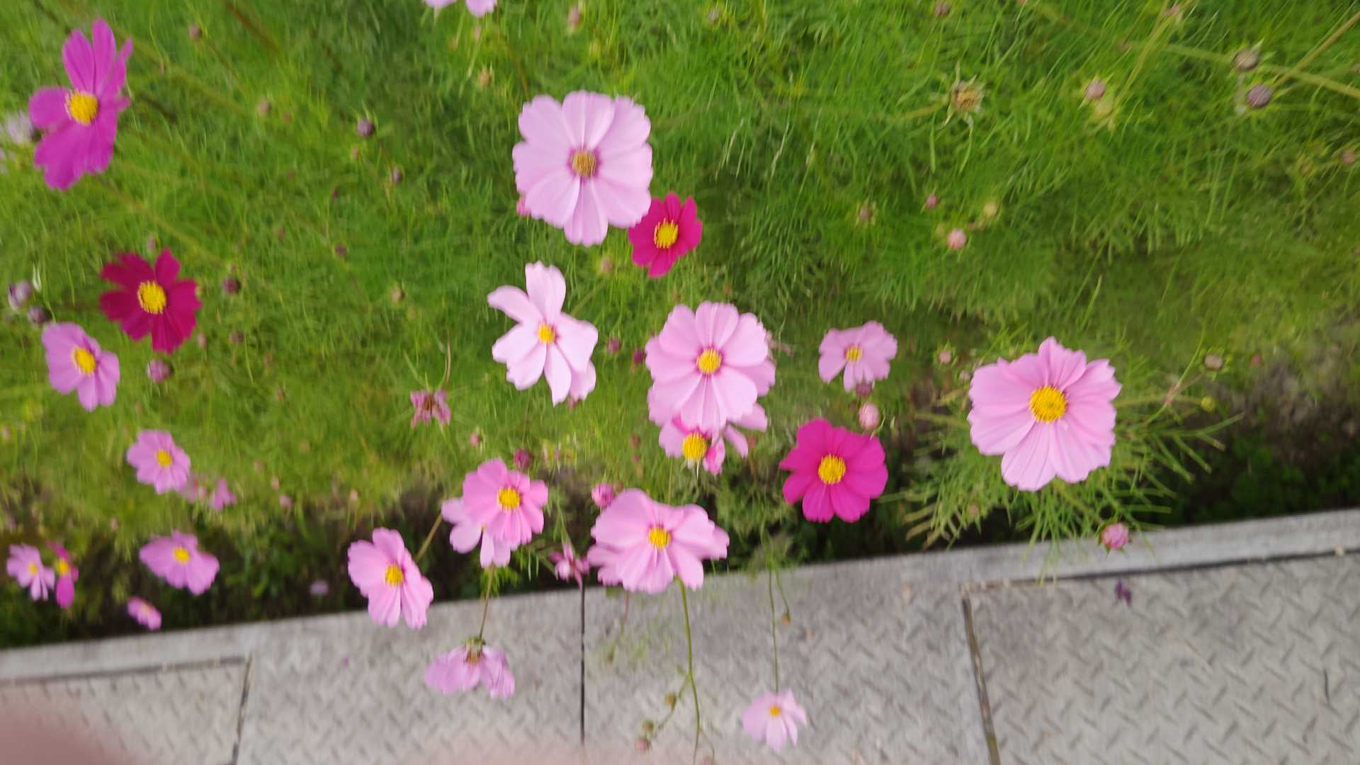 中宮寺跡周辺はコスモス畑が広がり、開花時期には多くの人が訪れています。