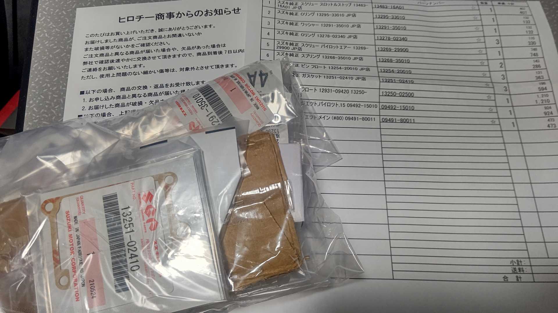 また、GAGのキャブ部品届きました。フロートやガスケット、フロートピンとか、前に注文してまさが、今後のこと考えて、色々と。。