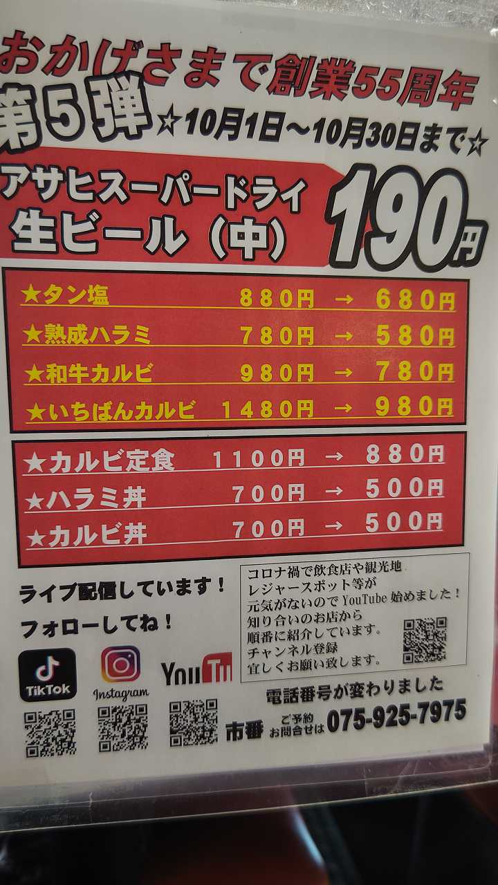 2021.10.29 久御山 焼肉 市番 いちばん定食