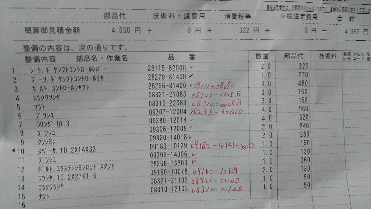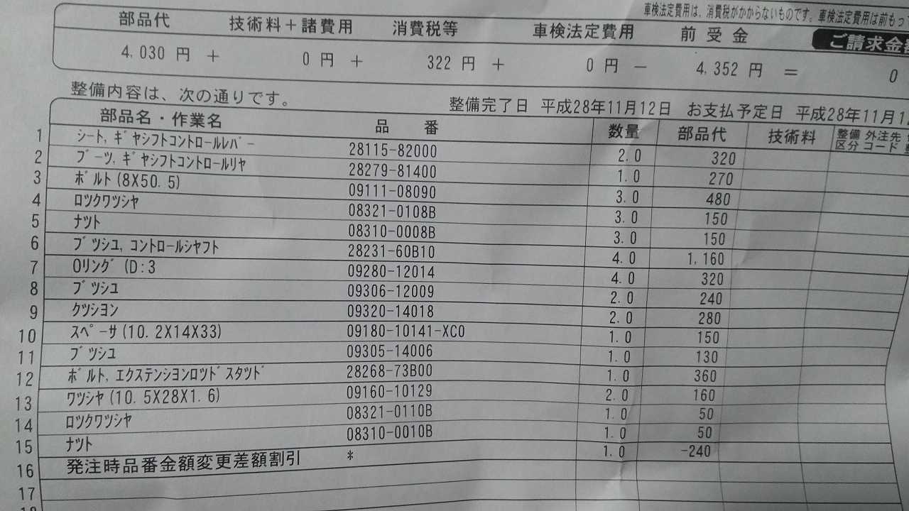 いくらかは、部品番号かわってたそうです。上二つが、なかなか届かなかったそう