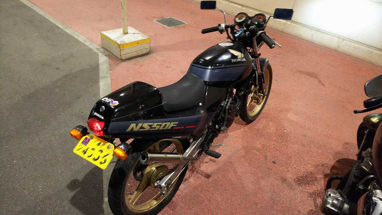 中を見ると、ノーマルで、そんなに飾りとかもつけてない、リヤシートの頭の部分に、両方とも麦わら防止かぶせてあるので、若い女性かな?