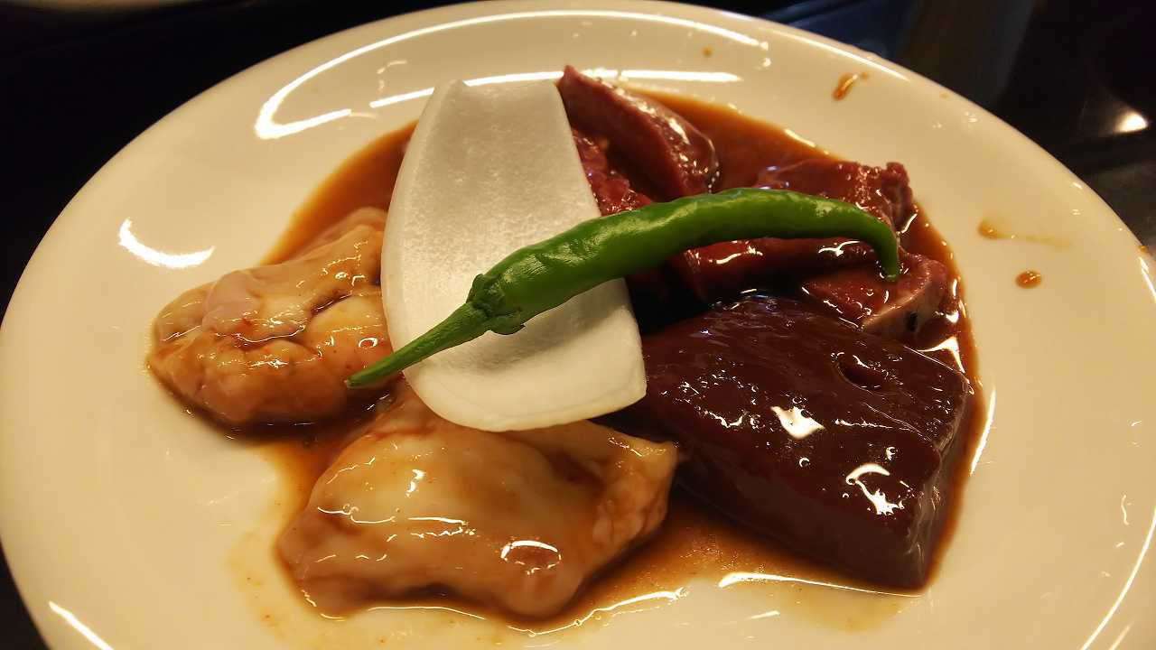 たまねぎに、牛スジと豚、あとトッピングに玉子と、とろけるチーズ2枚