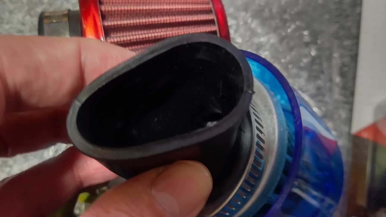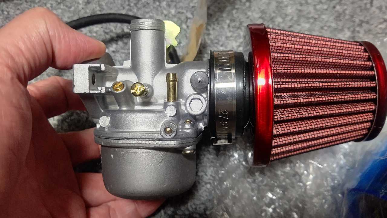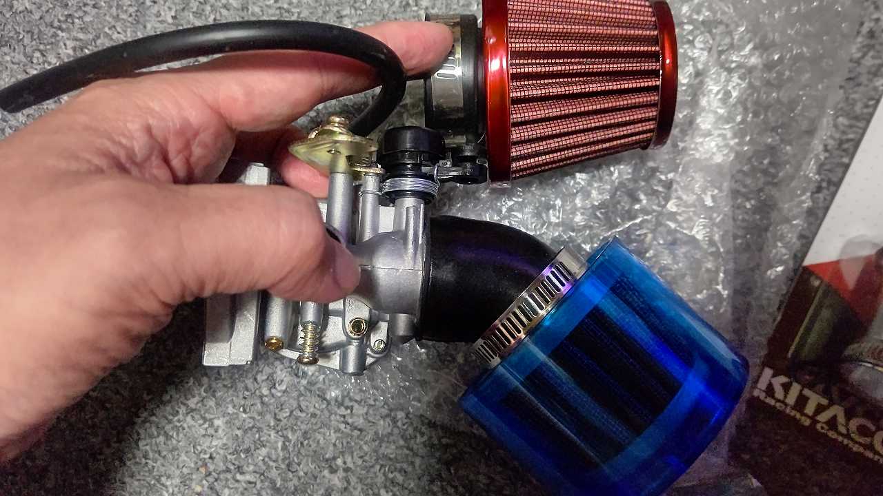 前買ったフィルターは、クラッチケーブルのほうに干渉して使えないので、曲がったやつを
