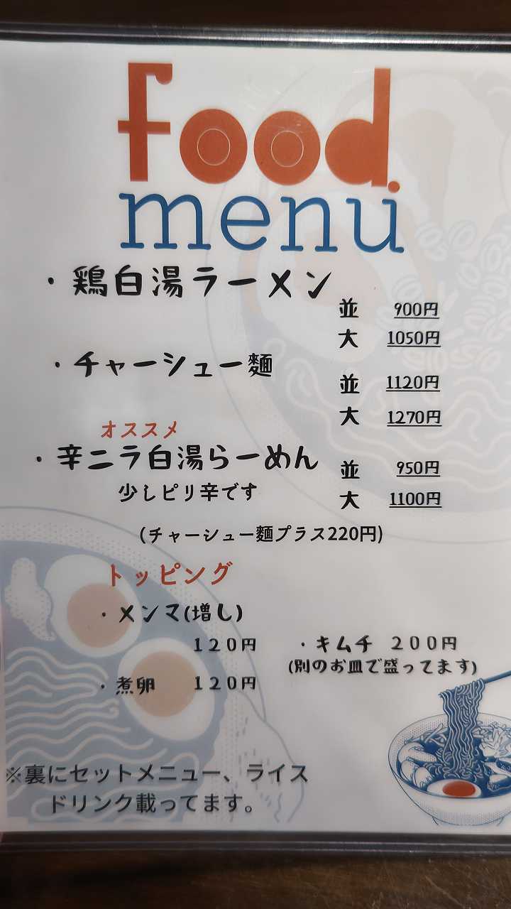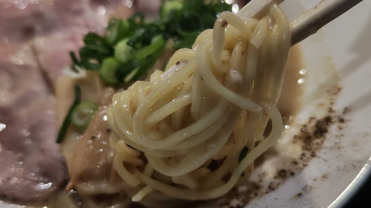 鶏白湯は、天一とか、無鉄砲などの、少しクセのあるドロドロこってりのスープに、玉ねぎとかだ、さっぱりとさせた感じですかね。スープに負けない味のある麺ですね。