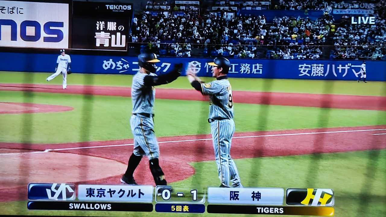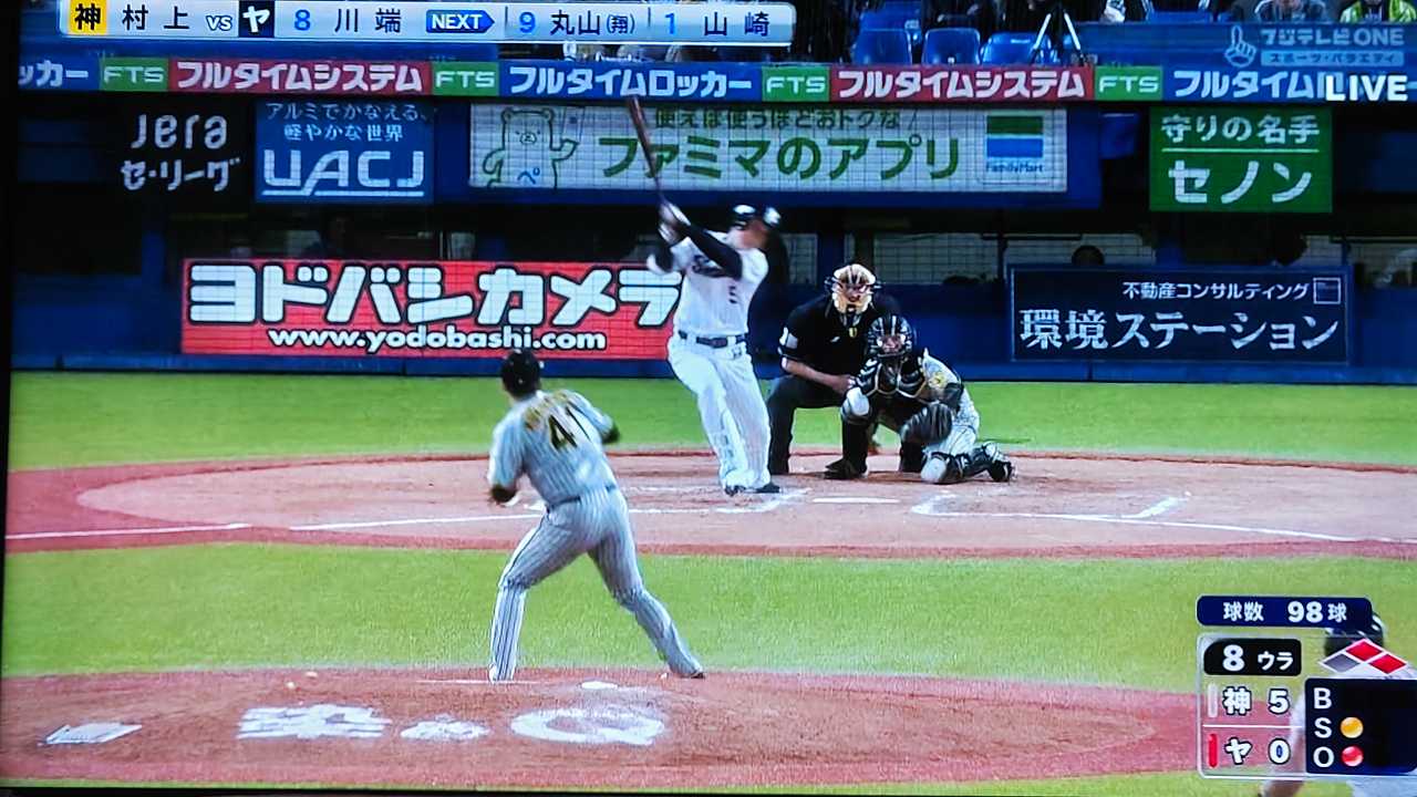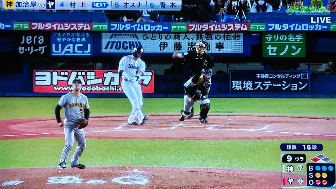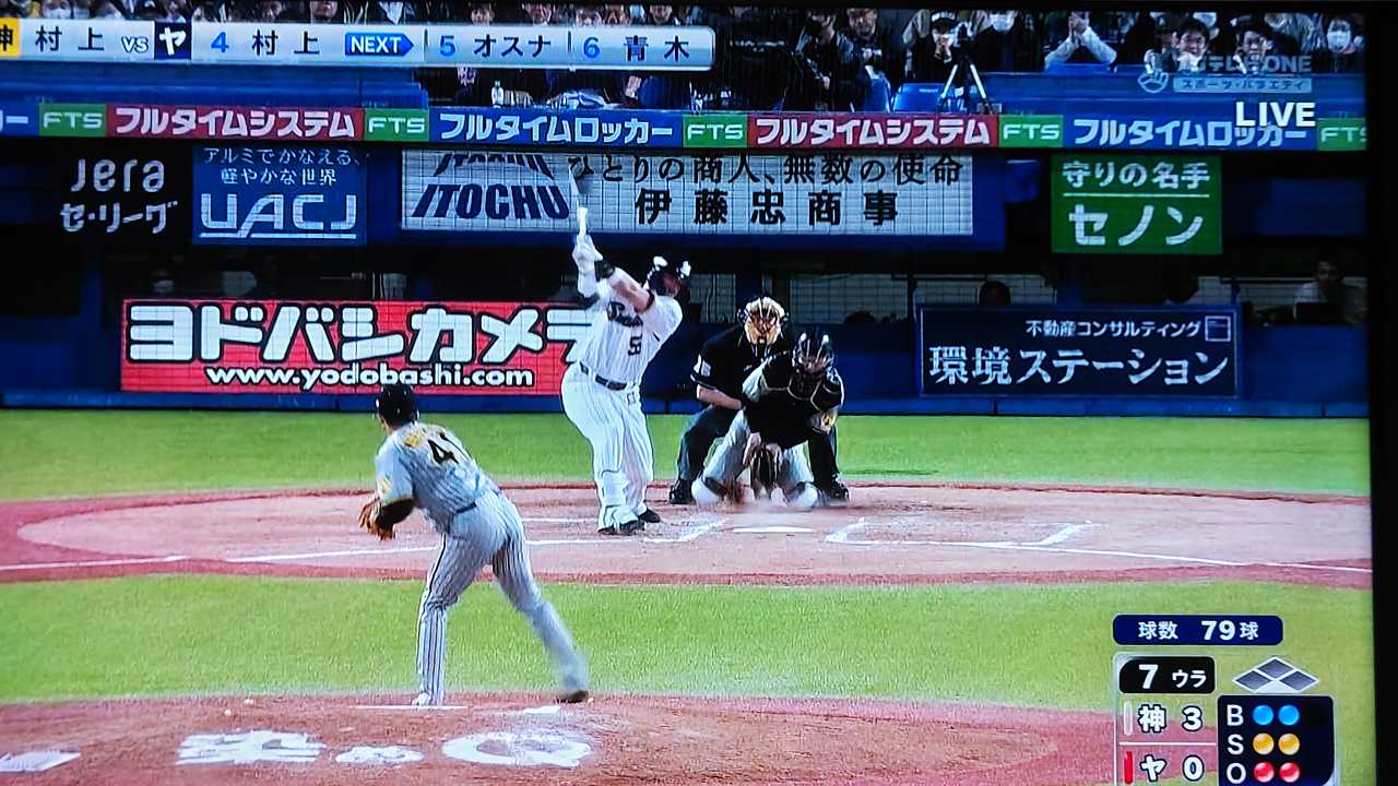 虎の村神様!!ヤクルトの村神様を三タコ三振ひとつに打ち取って、最後ピンチも川端山田の代打攻勢を外野フライ二つで、25イニング無失点!!!