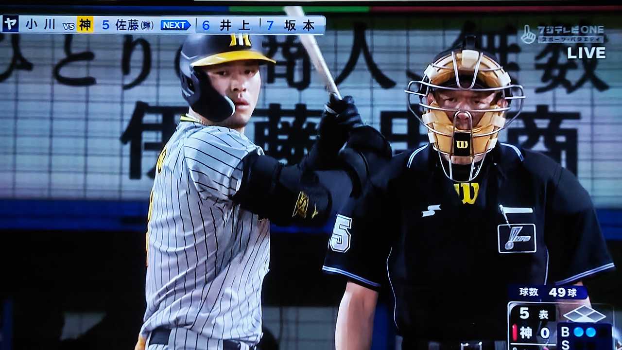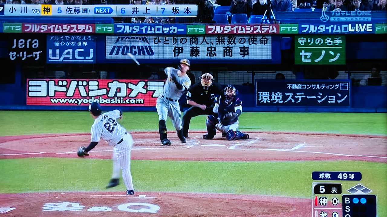 この好投を後押しすべく打線も5回につながった。まずは先頭の佐藤輝が右中間へ本塁打を放った。