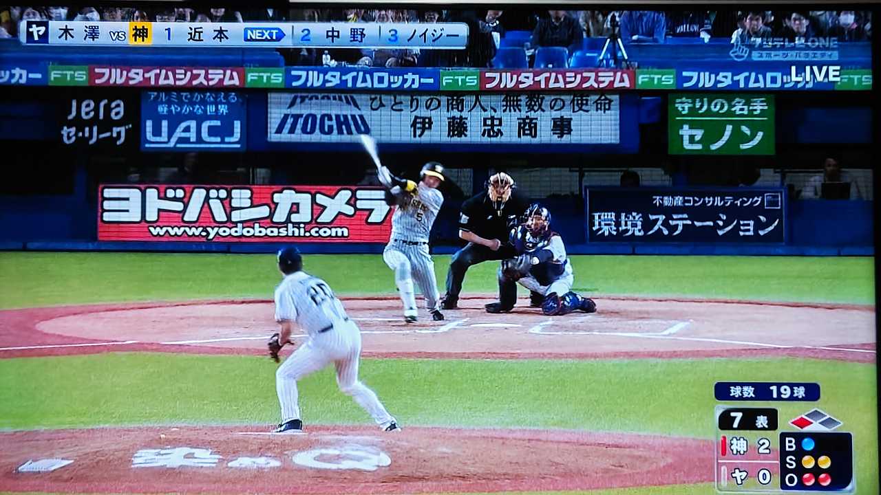 近本選手 7回表 左中間タイムリーツーベースヒット