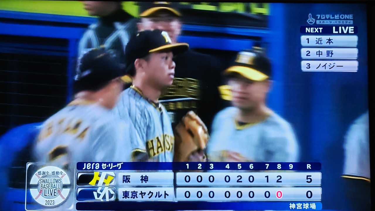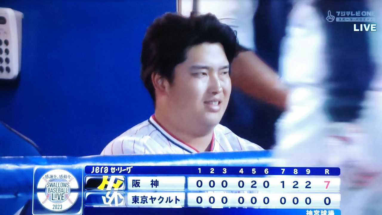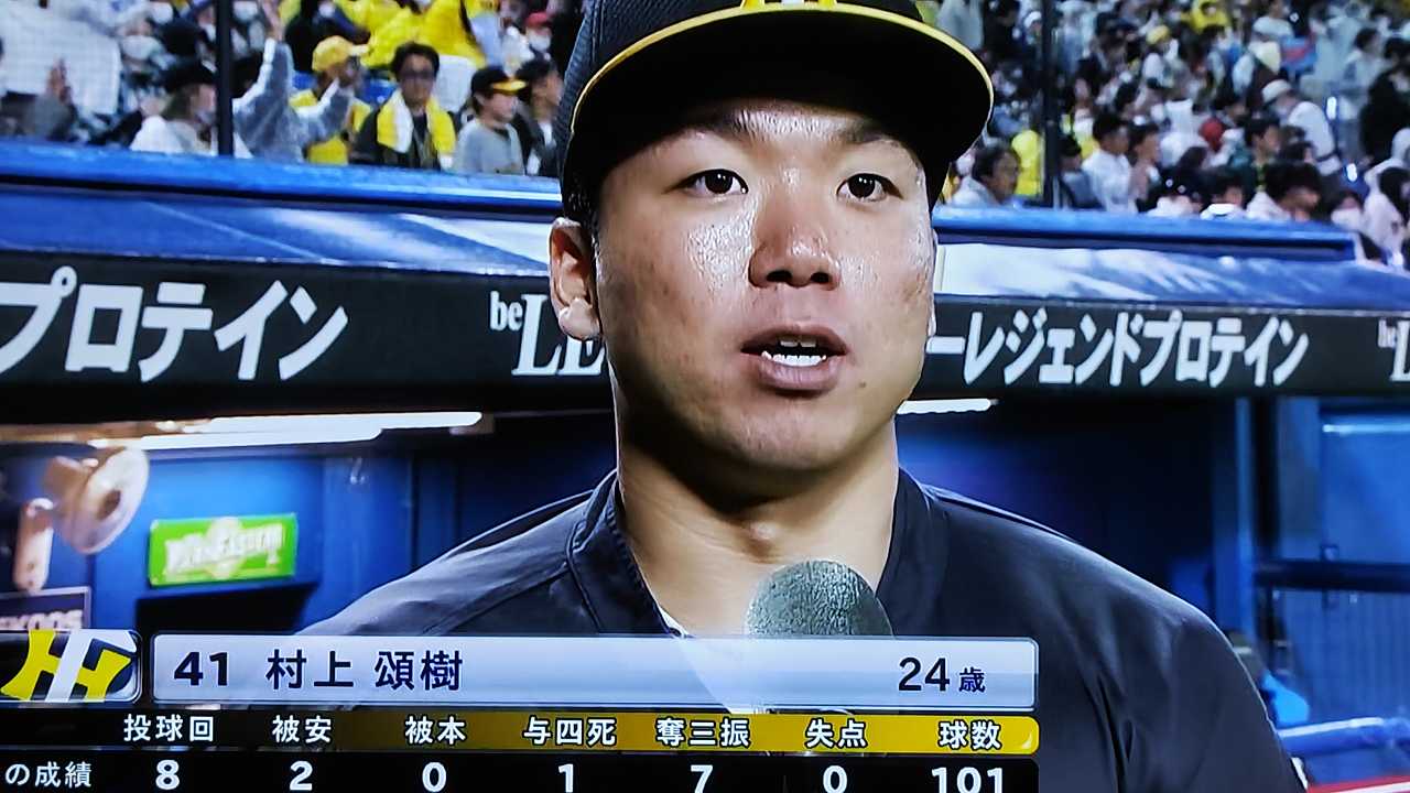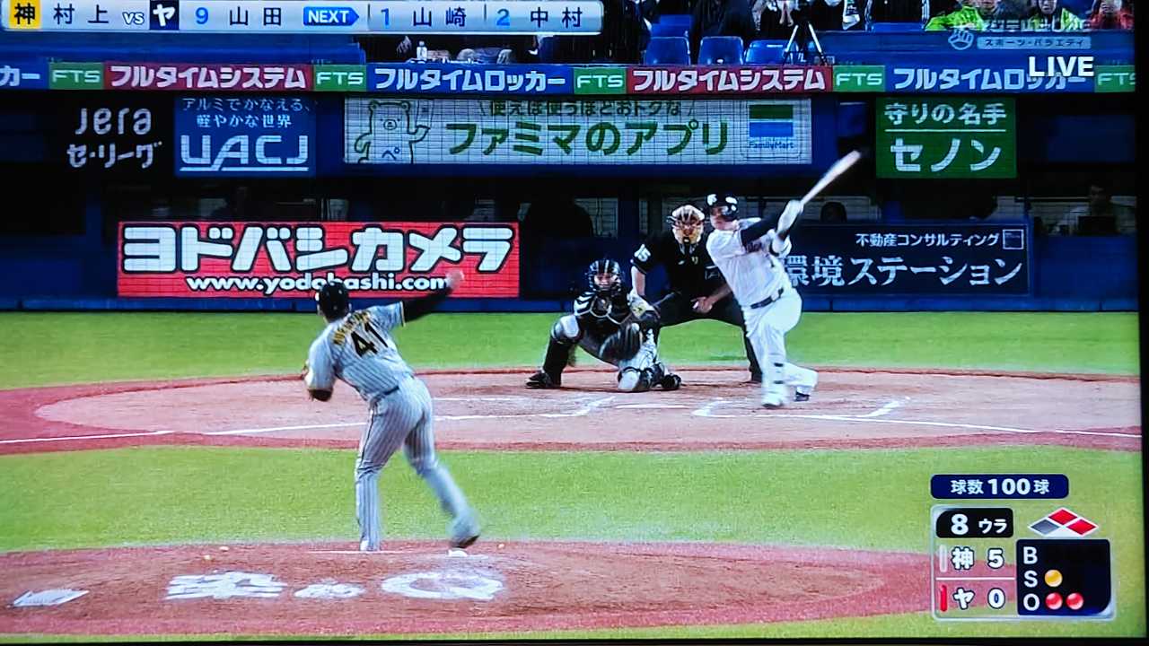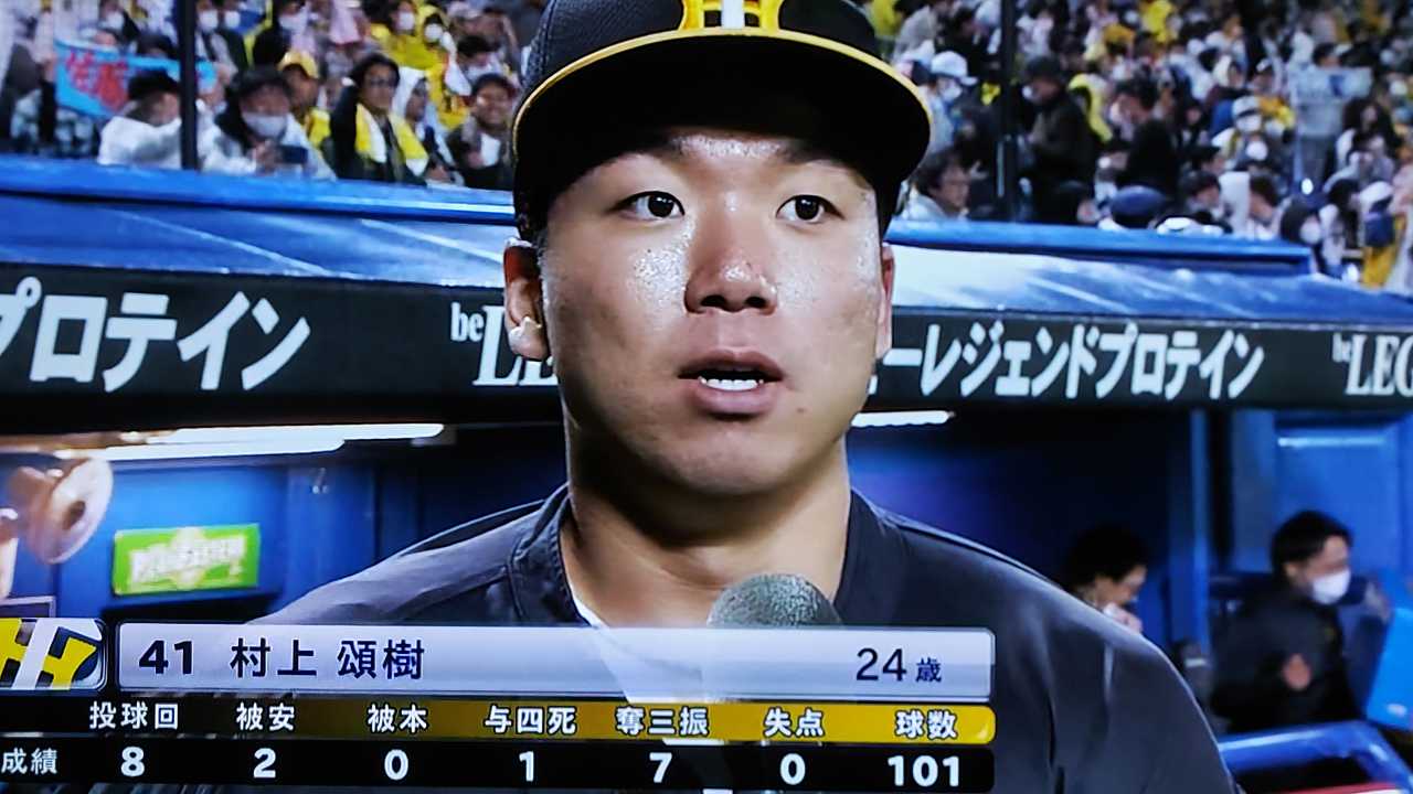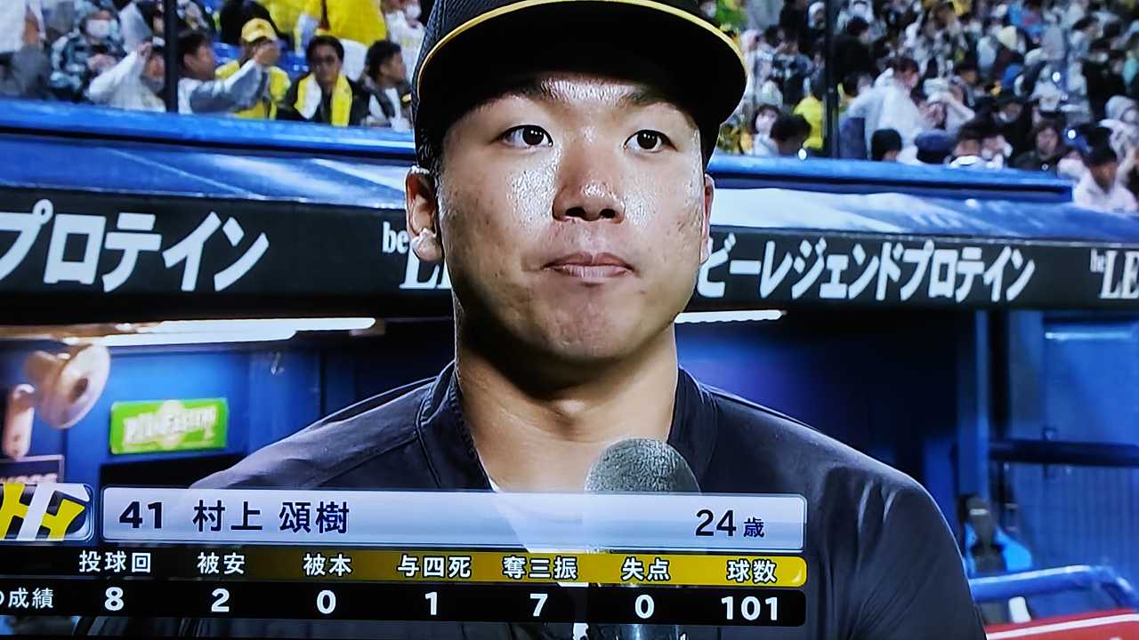 8回には佐藤輝がこの日2本目となる2点本塁打を豪快にライトスタンドへ運んだ。十分過ぎる5点のセーフティリードをもらった村上は8回に初めてピンチを招くが後続を打ち取り開幕からの無失点投球を継続した。