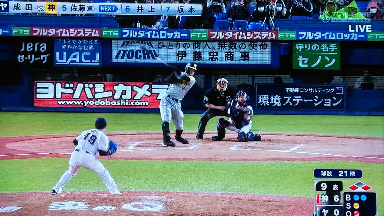 佐藤輝選手 5回表 右中間第2号先制ソロホームラン